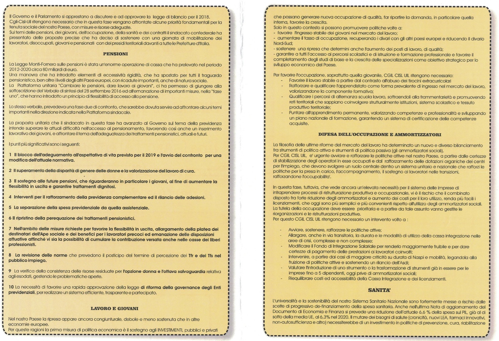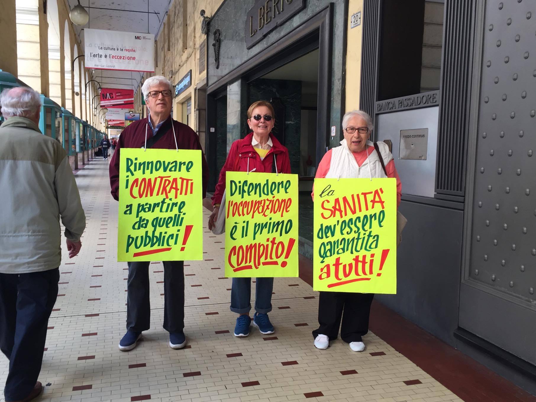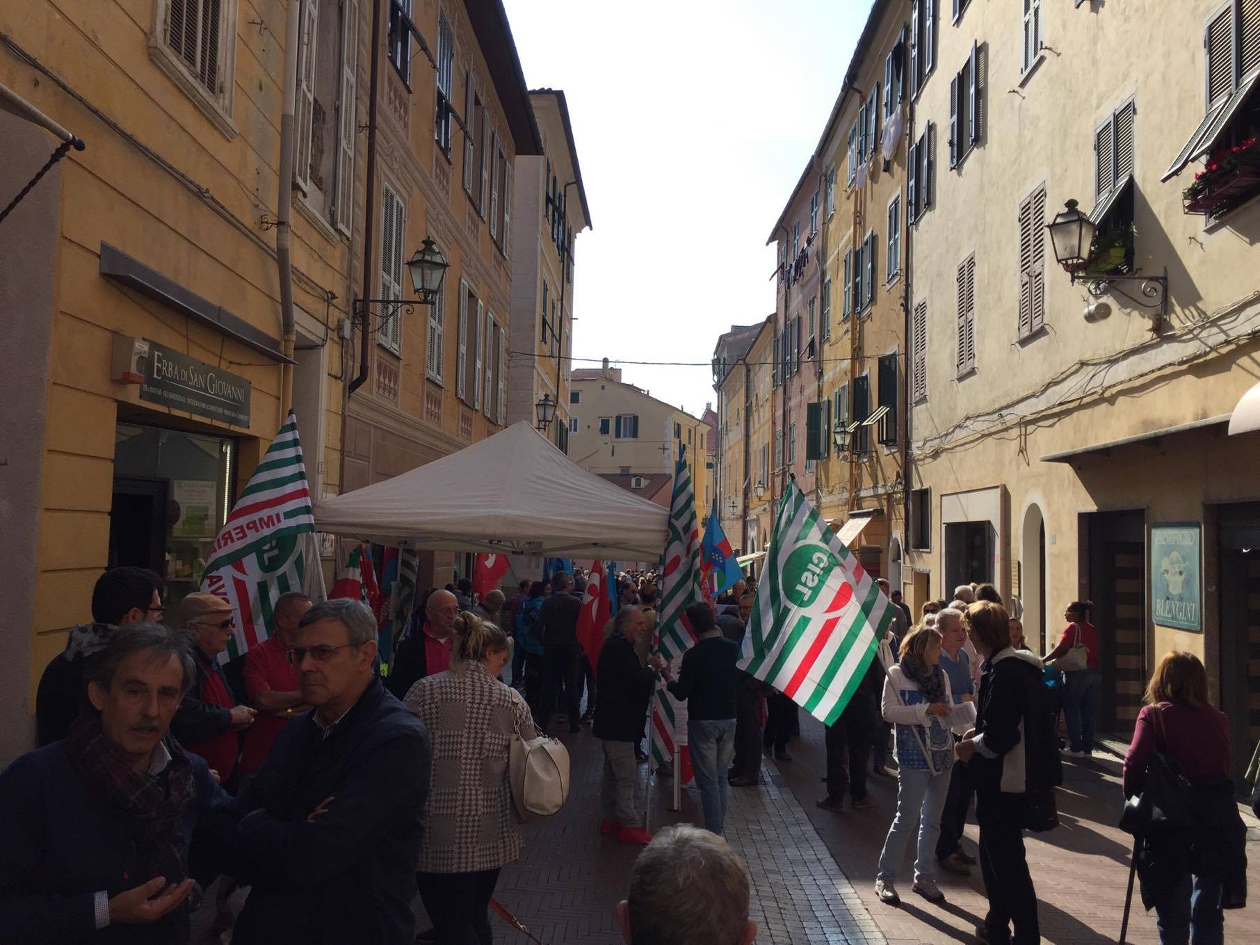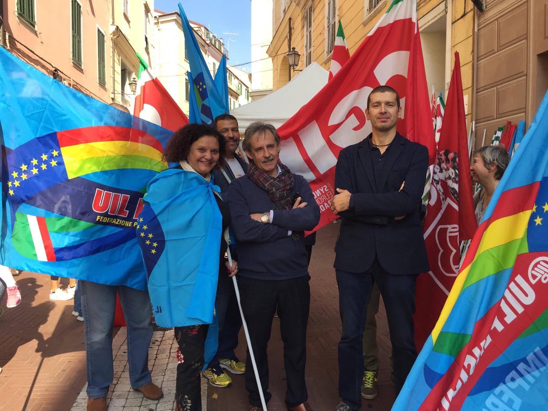 CGIL, CISL E UIL sono scesi in piazza questa mattina anche a Imperia per chiedere al governo interventi su temi come: le pensioni, i giovani, l’occupazione, la sanità e il rinnovo dei contratti. Prima tappa in Prefettura dove circa 50 militanti hanno consegnato un documento al Prefetto Silvana Tizzano e poi in via San Giovanni per il presidio con i banchetti e la distribuzione del materiale informativo alla popolazione. In particolare, i sindacati chiedono al governo un maggior impegno per le politiche del lavoro in entrata e in uscita, pensioni più dignitose, la sanità pubblica e il rinnovo dei contratti collettivi.