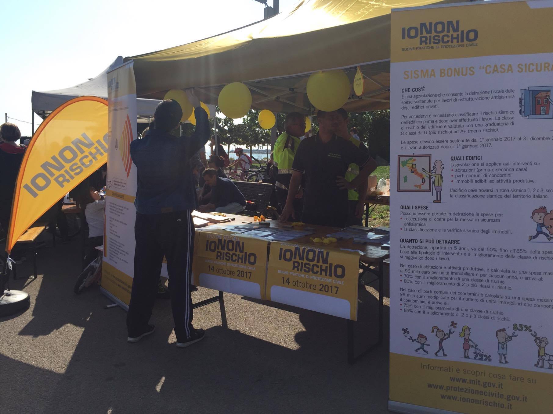 Grande successo, questa mattina, al Parco Urbano San Leonardo, in occasione della giornata nazionale “Io non rischio”, organizzata dai Volontari del Gruppo Comunale di Protezione Civile di Imperia e l’U.S. Caramagna, per diffondere la cultura della prevenzione e sensibilizzare i propri concittadini sul rischio sismico, sul rischio alluvione, sul maremoto e per comunicare le buone pratiche di prevenzione dei rischi. All’incontro hanno presenziato anche il Prefetto di Imperia Silvana Tizzano, l’assessore alla protezione civile Simone Vassallo, il Questore, il colonnello dei Carabinieri e il comandante della Capitaneria di Porto.