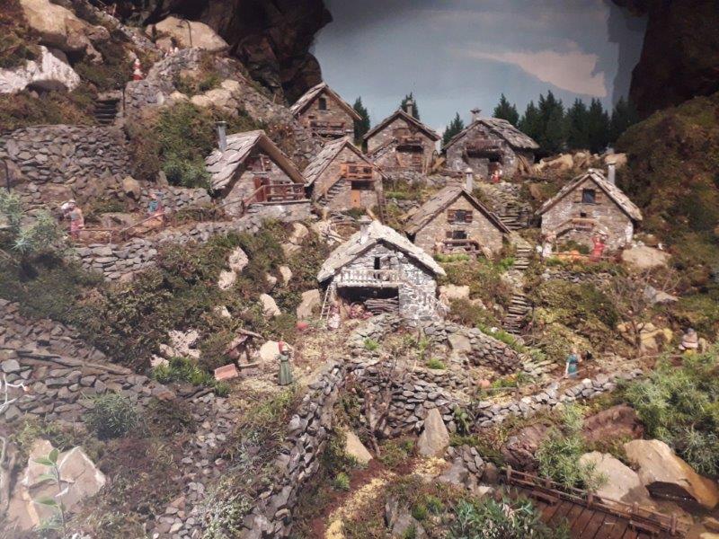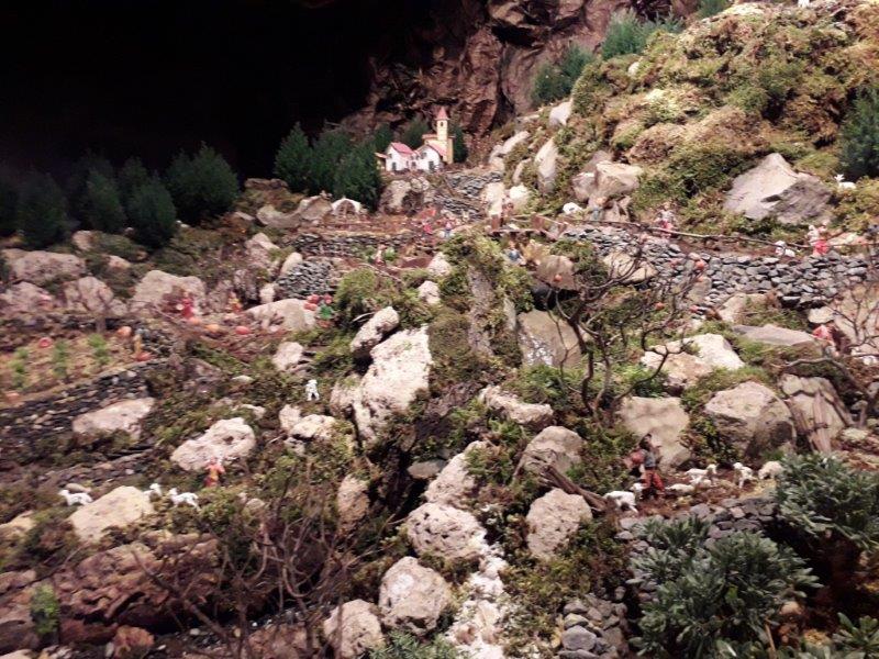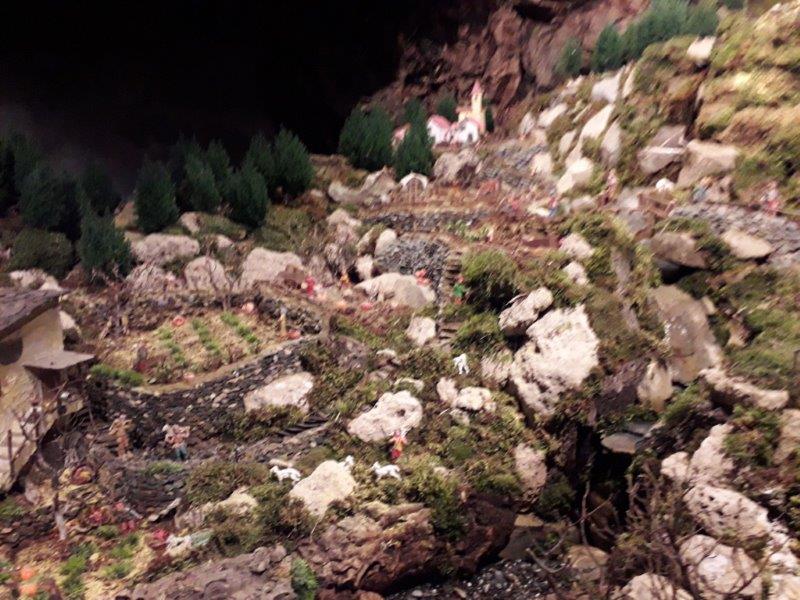 Tante sono le statuine in movimento che ricordano i lavori dei contadini delle nostre campagne. Numerose sono le sorgenti e le fontanelle e molte sono anche le nuove casette in pietra ed altre rustiche posizionate sui muretti (mascei) in pietra che ricordano i terrazzamenti del nostro entroterra. Numerosissime sono le piante di conifere, fatte arrivare appositamente dal nord Europa, che ricordano le nostre pinete.