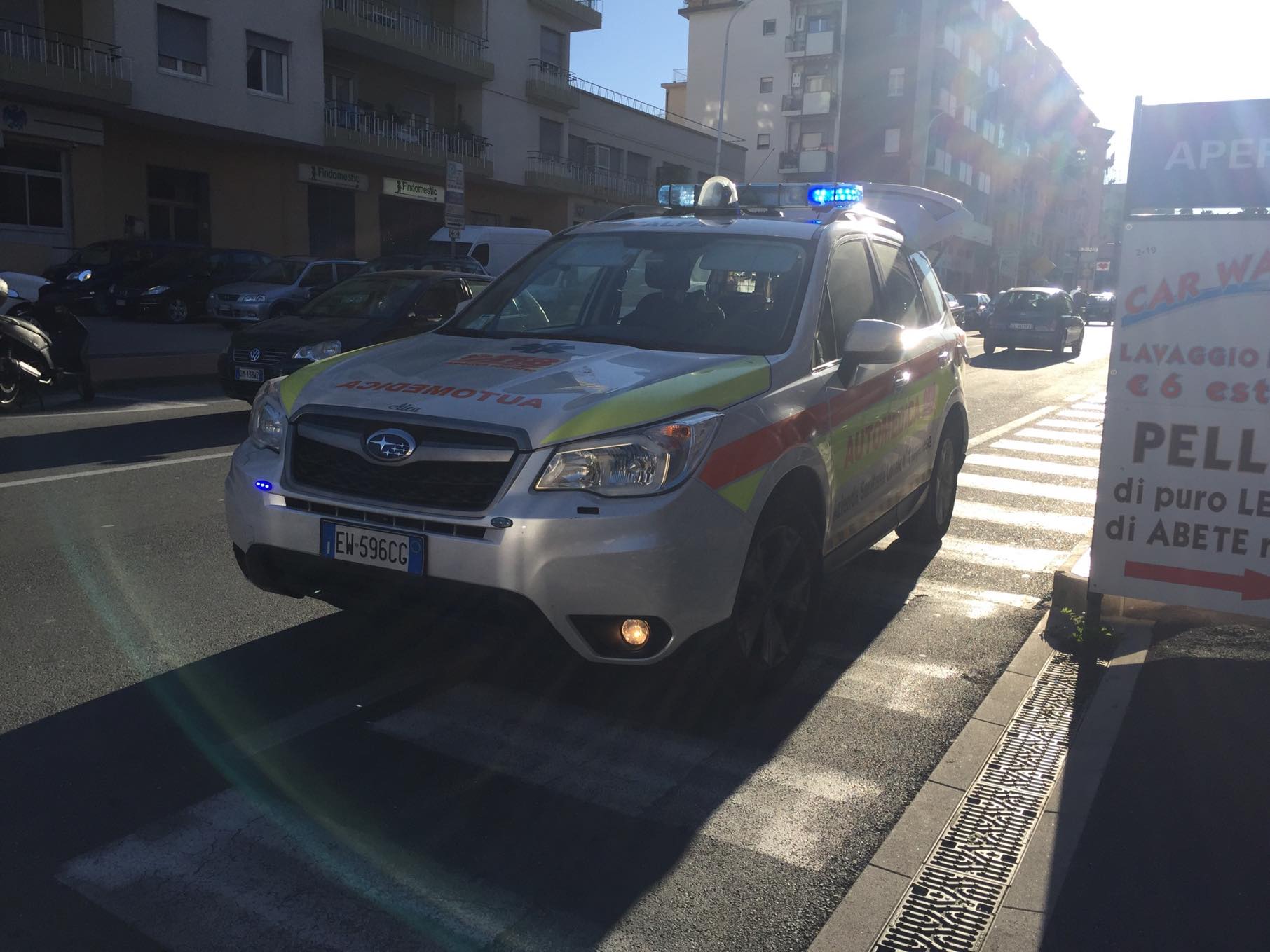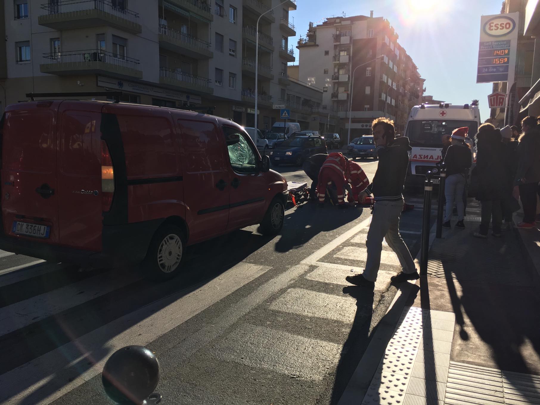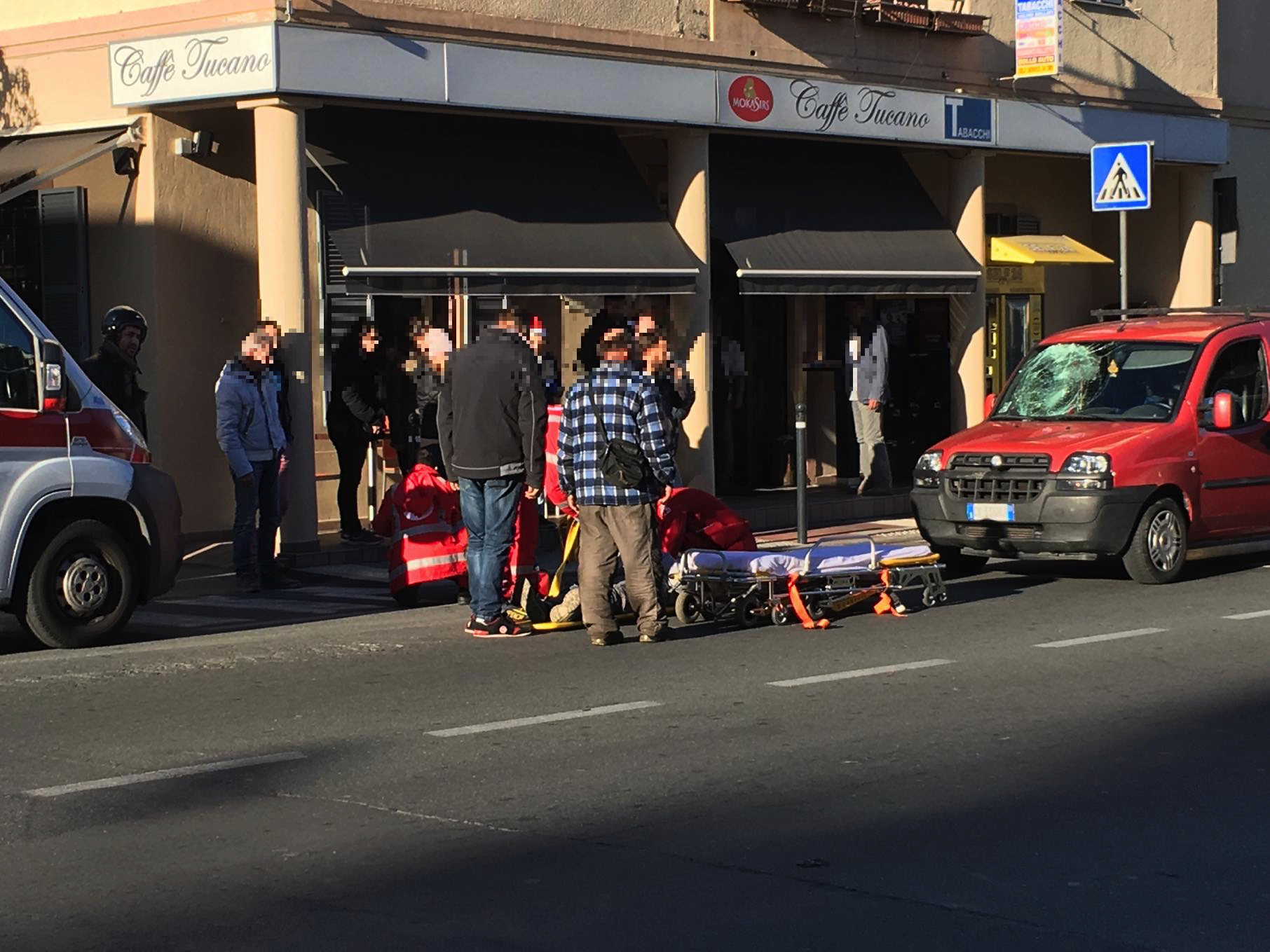 Imperia. Abbagliato dal sole non vede il pedone in tempo e lo travolge con l’auto. È successo nel primo pomeriggio, attorno alle 14.15, in via Matteotti davanti al bar Tucano. Un’auto, una Fiat Doblò, guidata da un giovane ha travolto T.T. 23 anni, mentre stava attraversando la strada all’altezza del bar Tucano in via Matteotti. L’automobilista, abbagliato dal sole, ha visto il pedone soltanto all’ultimo secondo quando ormai l’impatto era inevitabile.