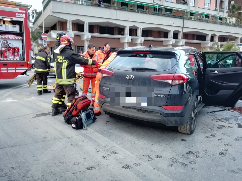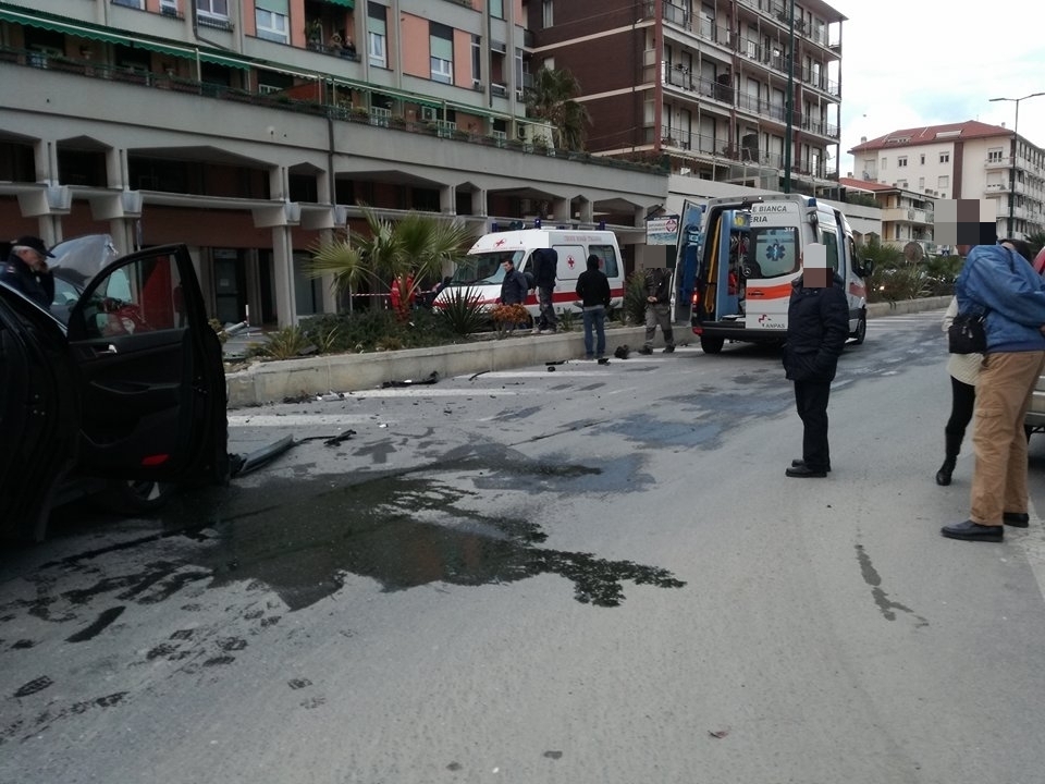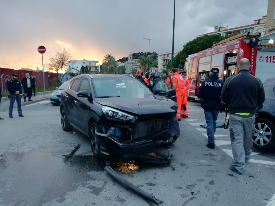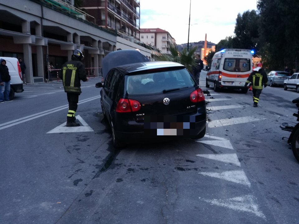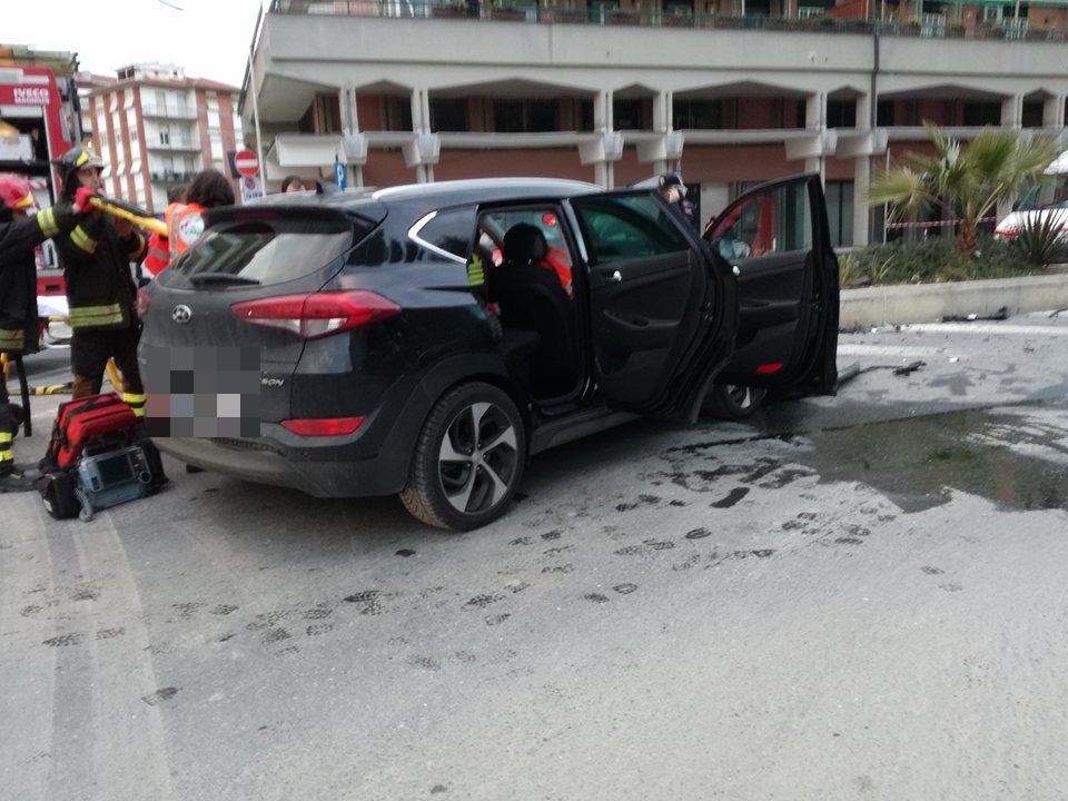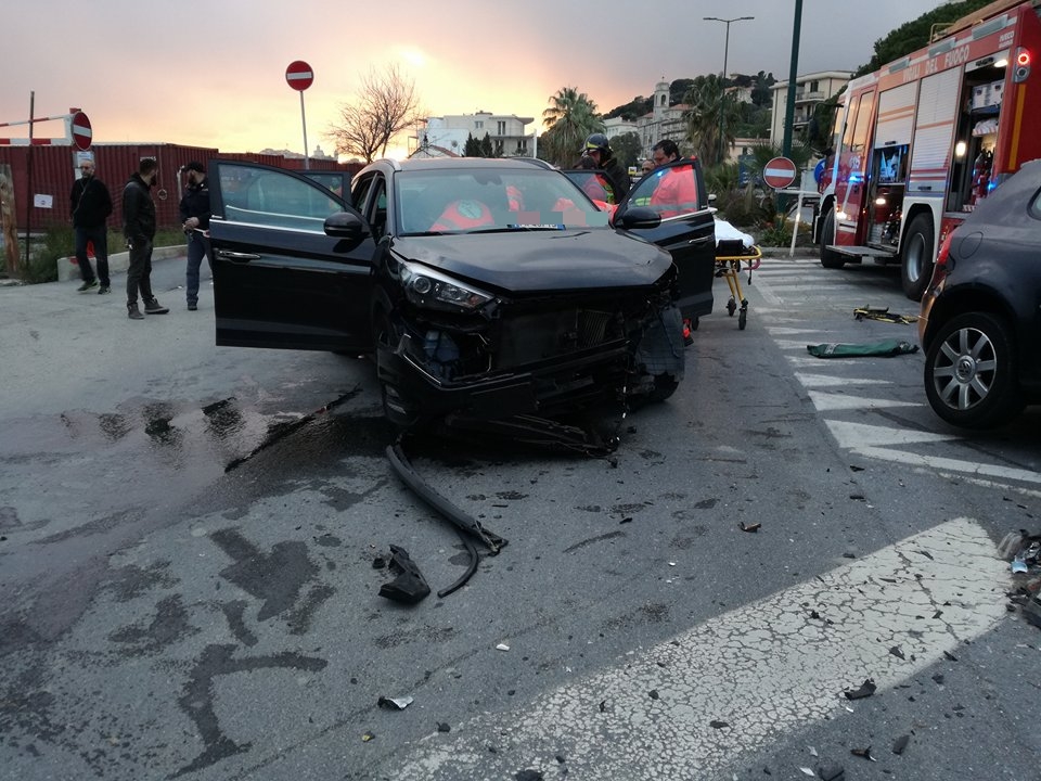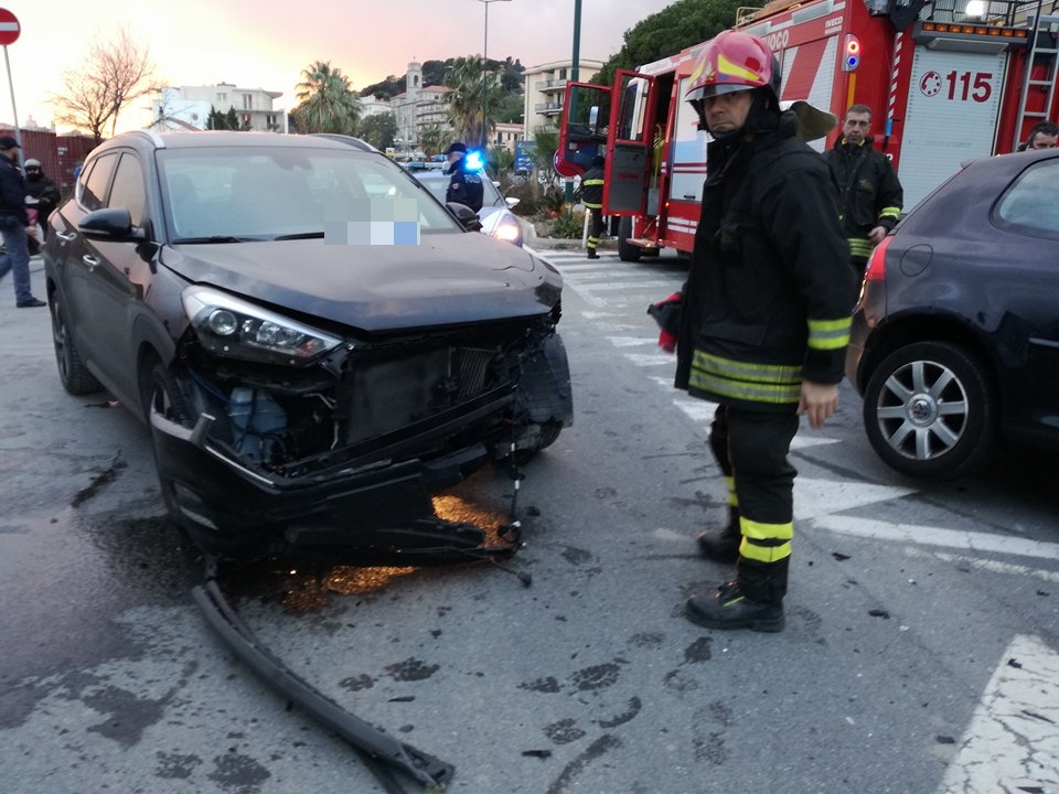 Mobilitazione di soccorsi per un pauroso incidente sul Lungomare Vespucci. Due le auto coinvole, una Volkswagen Polo e una Hyundai Tucson, che per motivi ancora in fase di accertamento si sono scontrare all’altezza dell’incrocio antistante l’ingresso dell’area ex Ferriere. Sul posto sono intervenuti i Vigili del Fuoco, la Croce Rossa di Imperia, la Croce Bianca di Imperia, l’automedica del 118 e una Volante della Questura, per regolare il traffico e per ricostruire la dinamica dell’iimpatto.