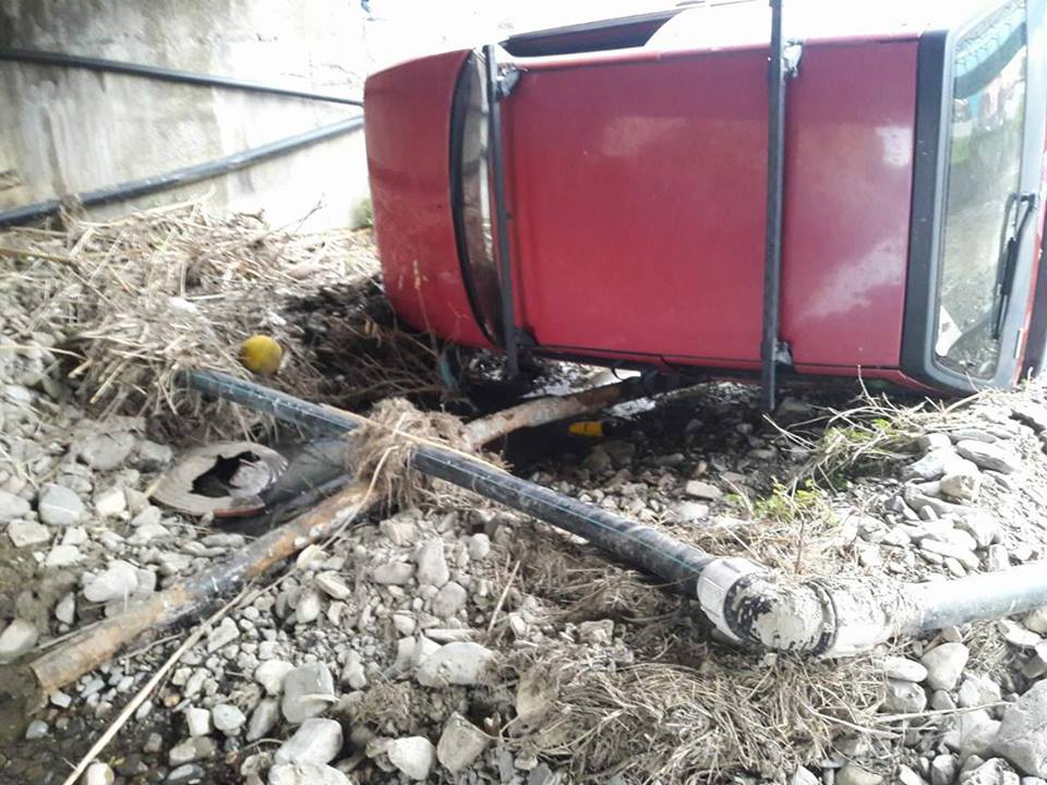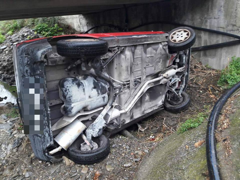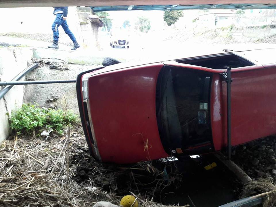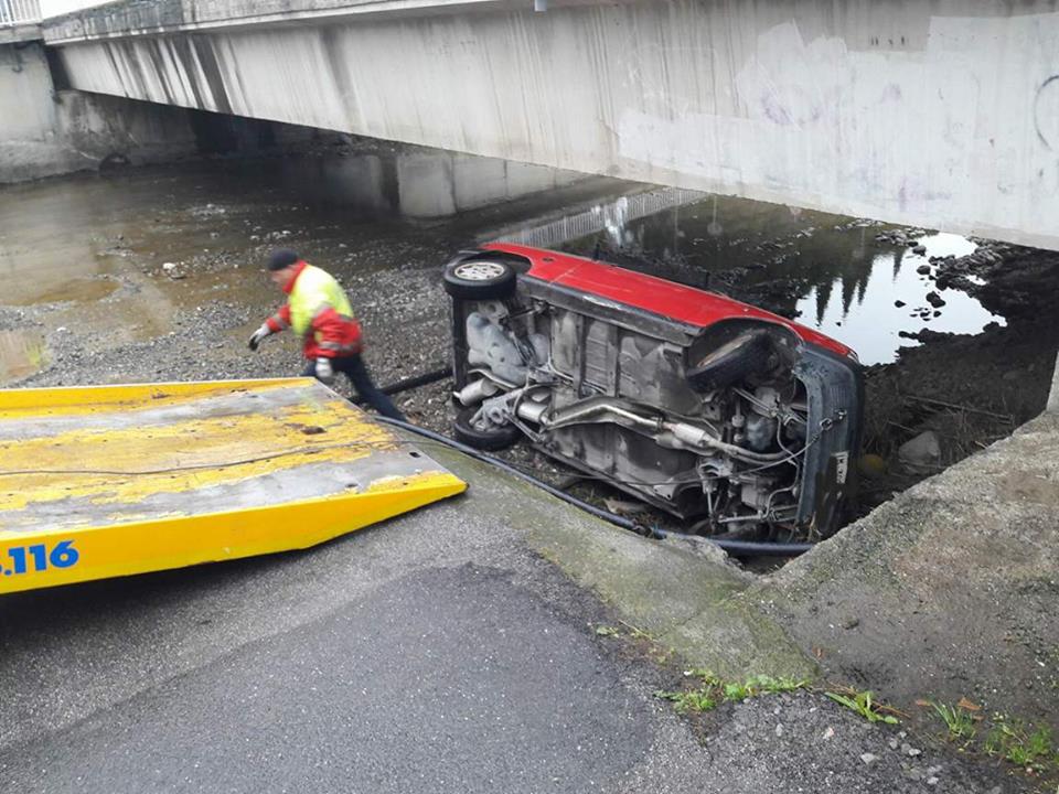 L’auto, che ha fatto un volo di un paio di metri prima di finire nel torrente, è stata recuperata da un carro attrezzi.