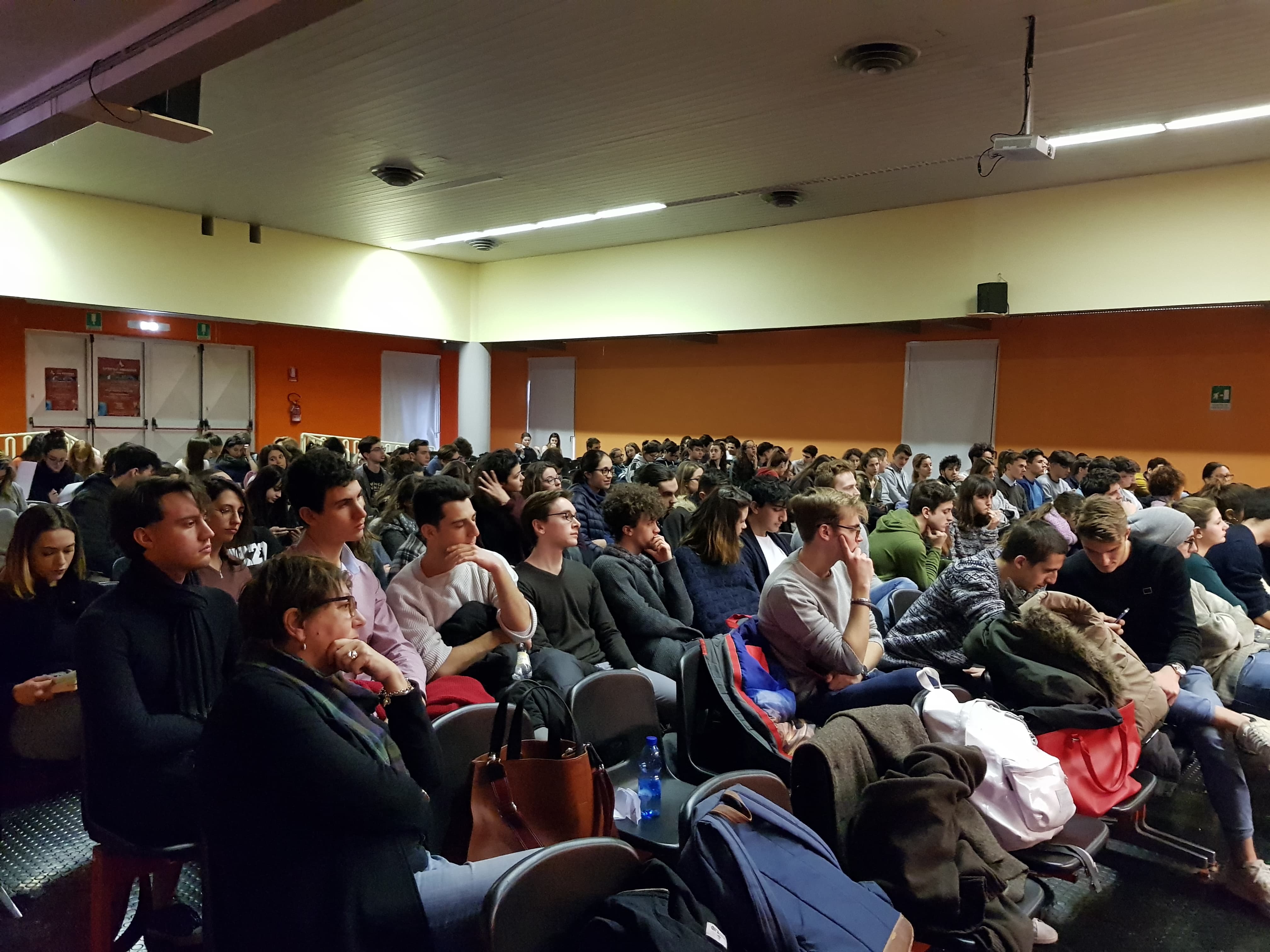 L’incontro, fortemente voluto dai quattro rappresentanti di istituto – Andrea Ghirardini, Filippo Gorlero, Giordano Pellegrini e Camilla Pelosi – ha riguardato le classi quarte e quinte di tutti gli indirizzi del liceo.