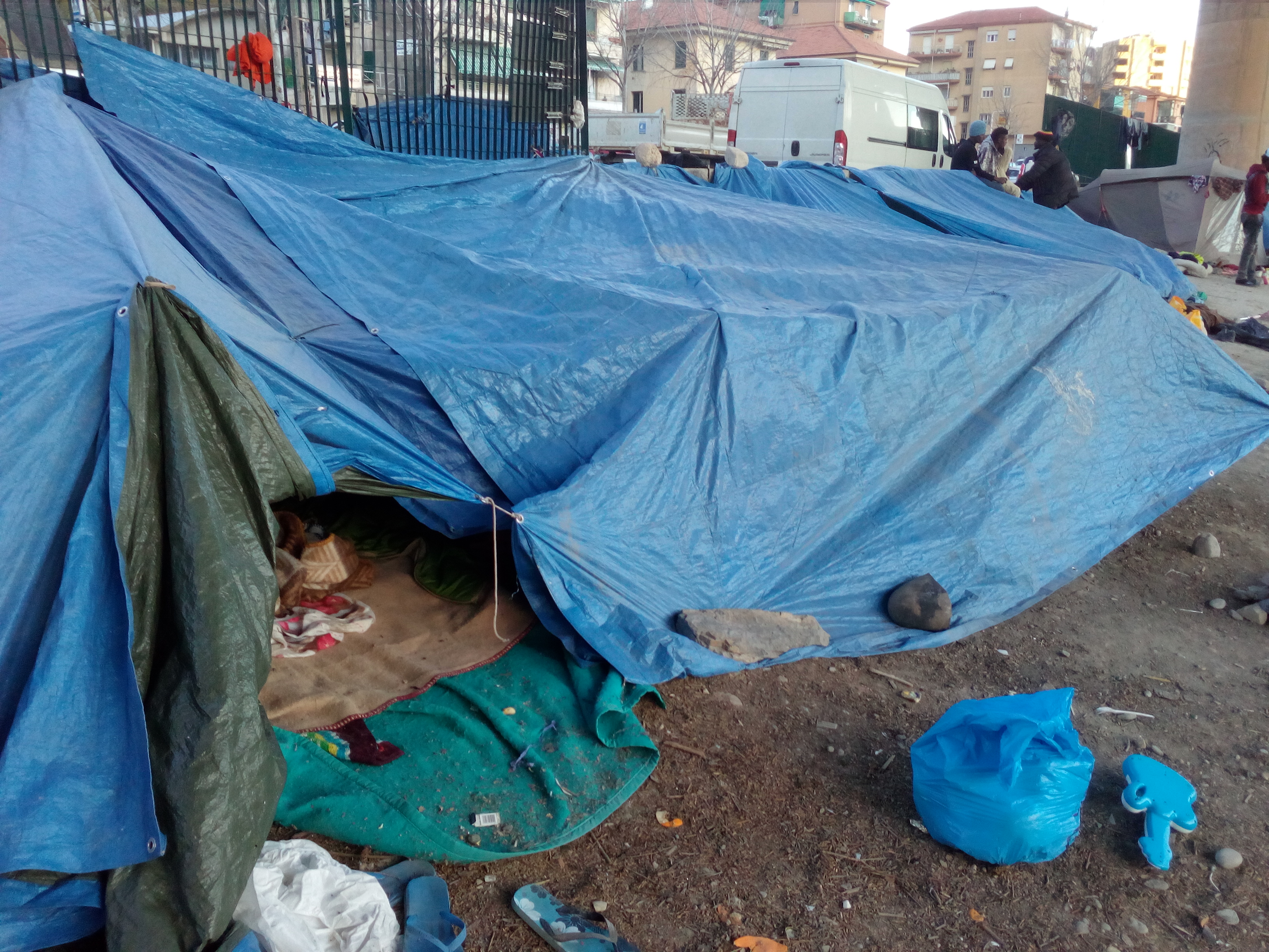 “Le condizioni in cui vivono decine di persone, bambini compresi, sono inumane: famiglie intere si accampano lungo il fiume, in condizioni igieniche preoccupanti e senza garanzia di assistenza sanitaria, per essere sfamate o per avere acqua potabile possono affidarsi solo ai solidali sui quali, fra l’altro, le istituzioni si sono accanite con sistematicità, e persino la chiesa delle Gianchette, che dava accoglienza a donne e bambini, ha dovuto chiudere i battenti lo scorso anno.