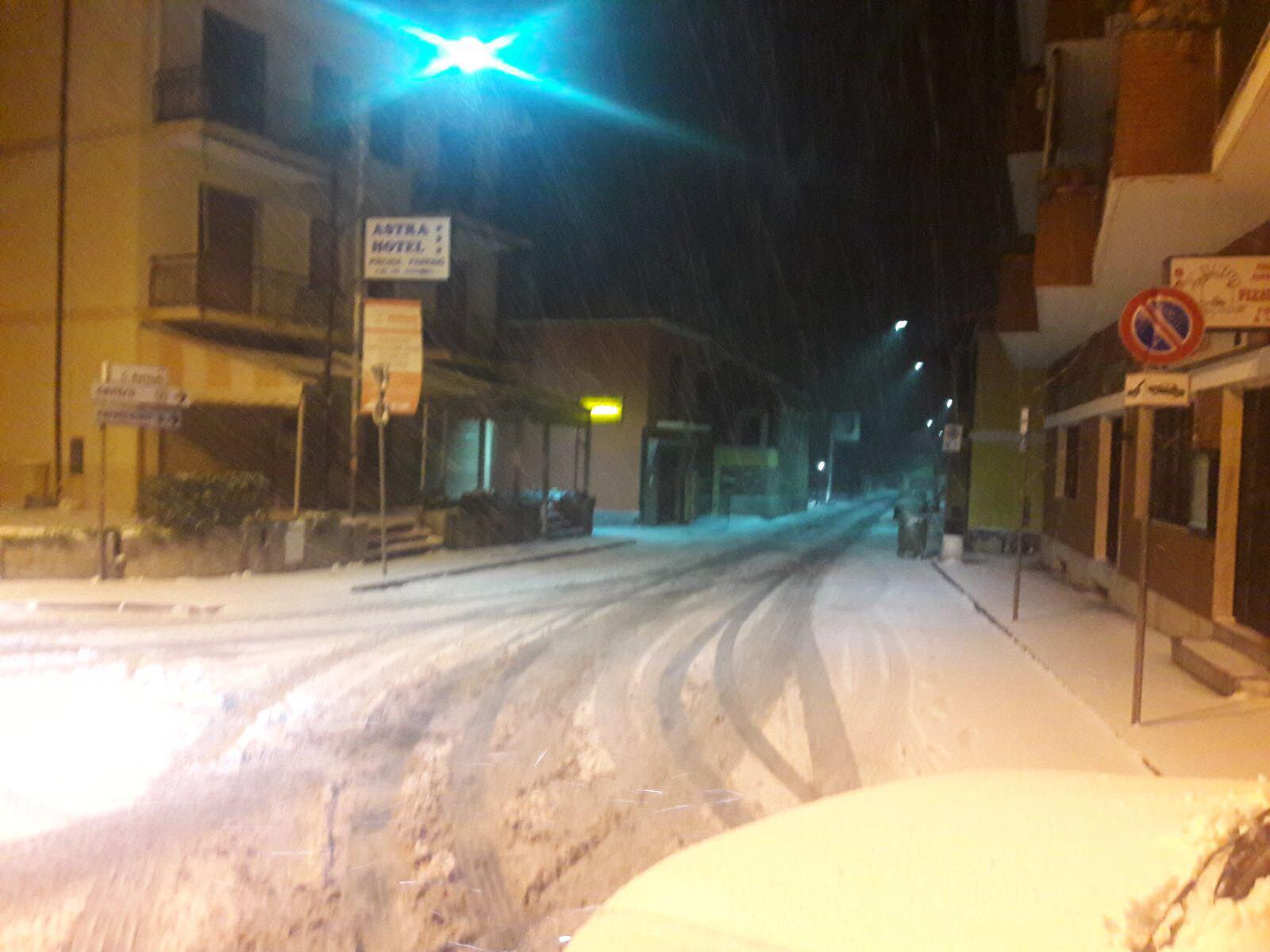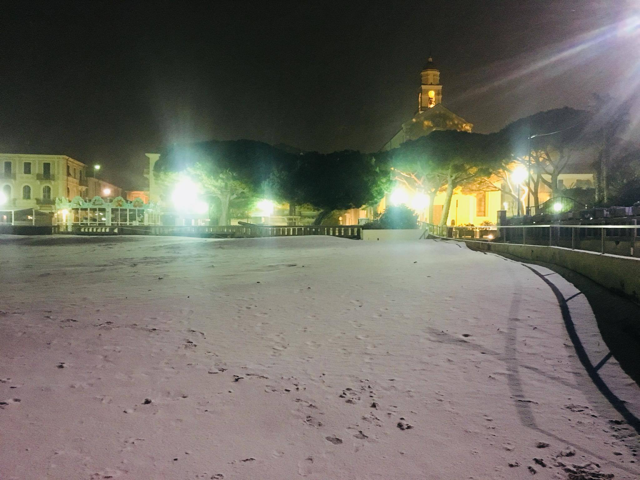 Strade e spiagge imbiancate. Così si é svegliata Diano Marina questa mattina. Così come a Imperia e nell’entroterra, anche nella città degli aranci questa notte ha iniziato a nevicare, come annunciato nella giornata di ieri. La situazione più critica si registra nelle frazioni come diano Bonello, Arentino, Calderina. La Protezione Civile ha diramato, nella zona del ponente ligure, l’allerta meteo rossa per neve che durerà fino alle 12 di oggi, quando scenderà a livello arancione. Infine passerà a livello giallo alle 18.