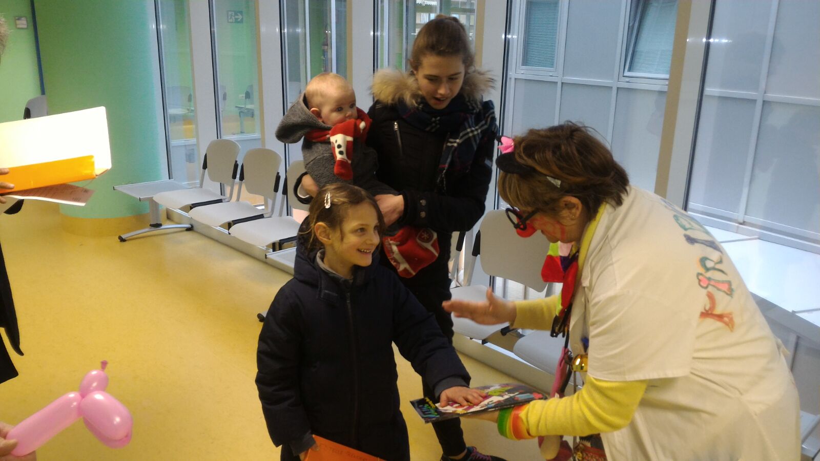 Come testimoniano le immagini (e come confermano i sanitari) questi momenti di divertimento e gioco, attraverso sorrisi e buffi scherzi, aiutano i bambini nell’attesa della vaccinazione, attivando un processo di rilassamento, contenendo stress e paure che meglio li predispone all’incontro con il medico nell’ambulatorio.