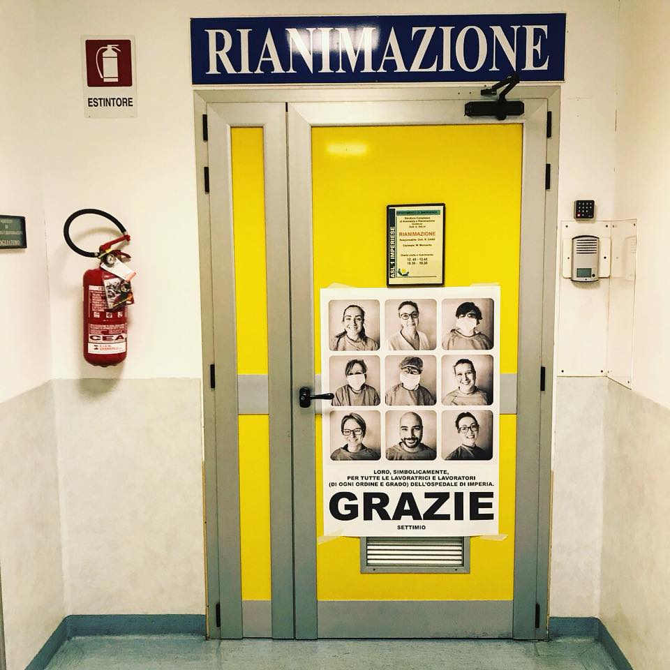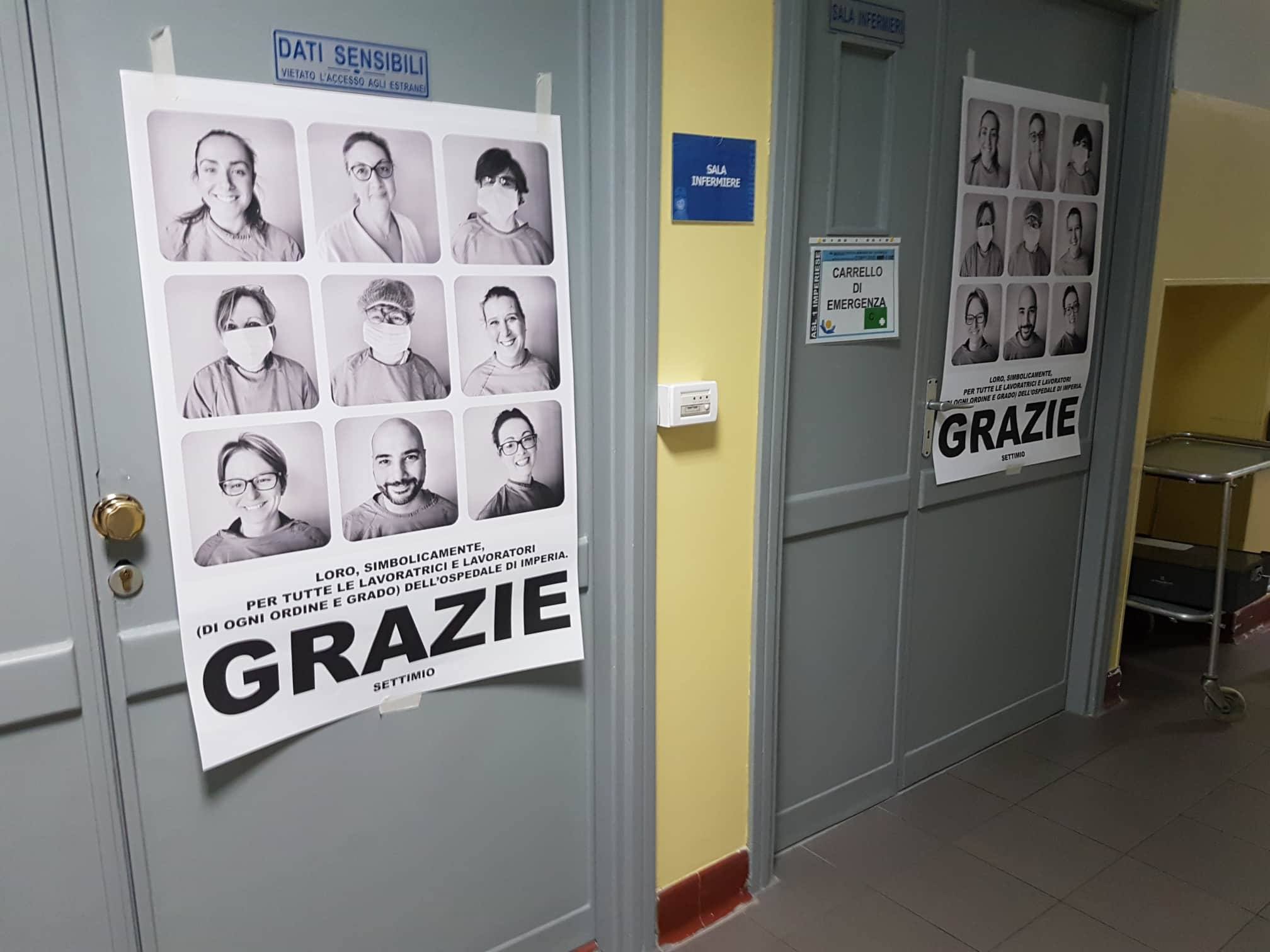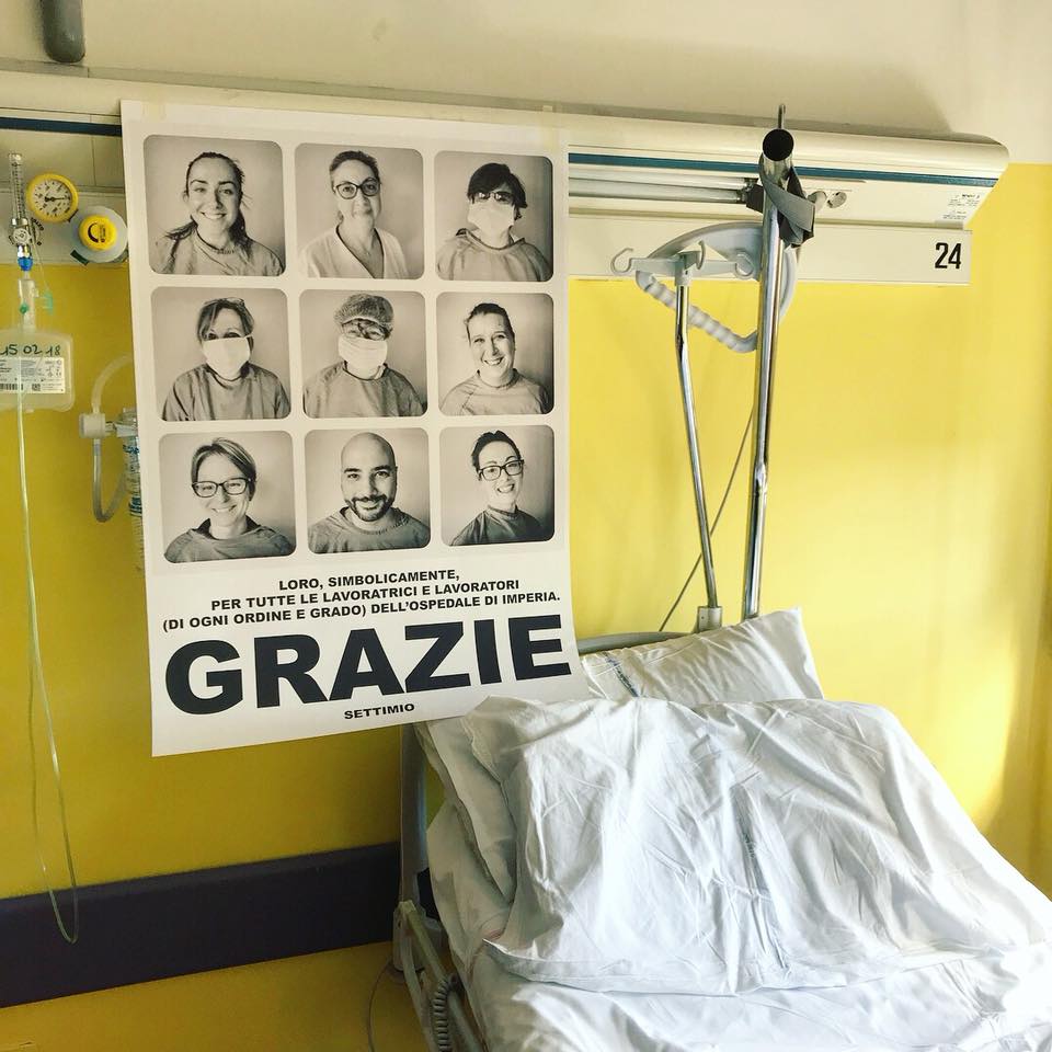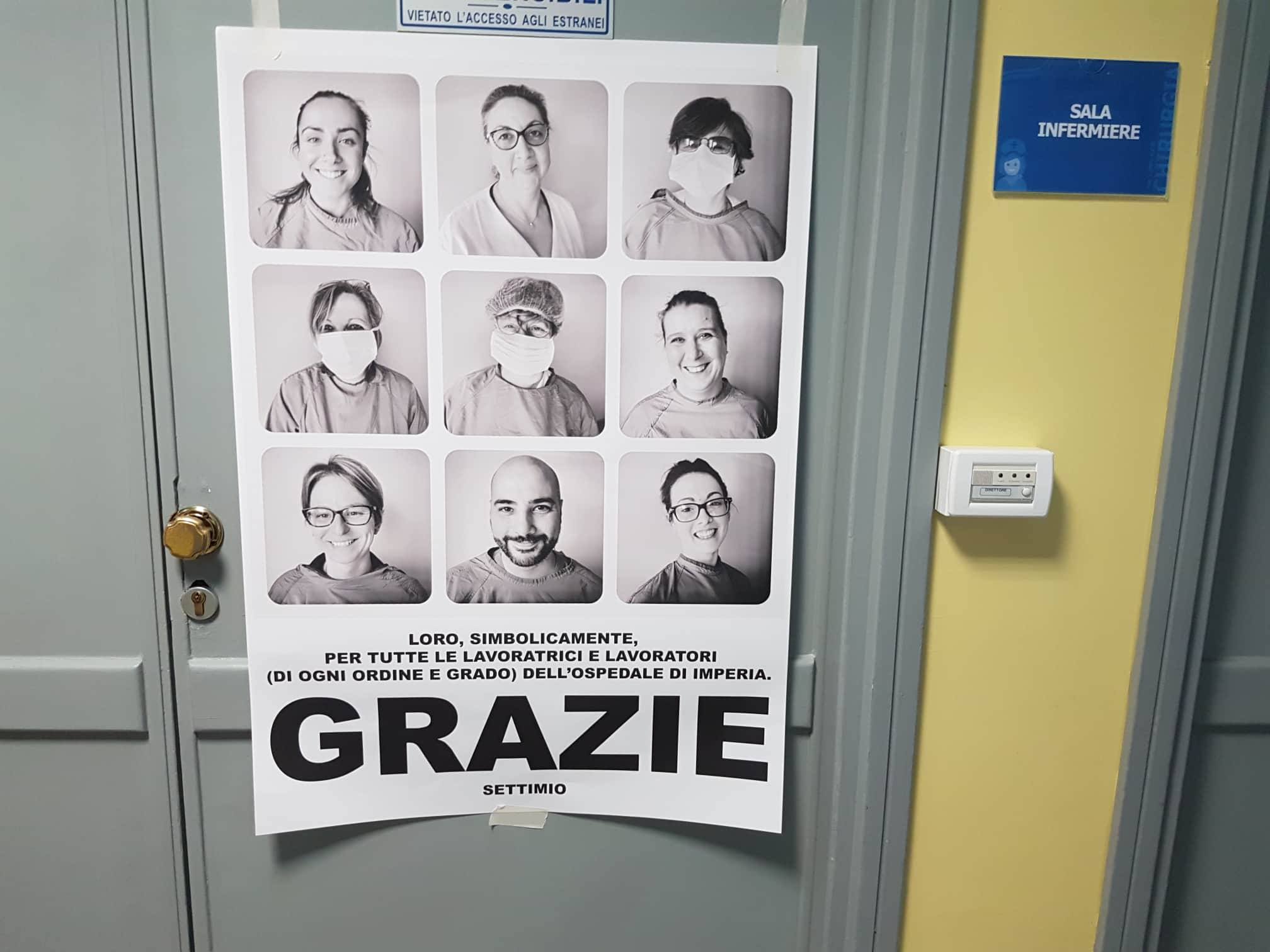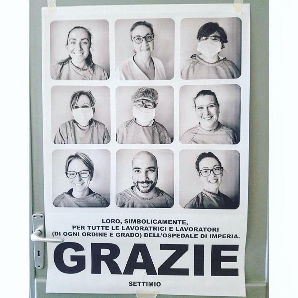 Poco prima di essere dimesso, il fotografo, desideroso di ringraziare tutti coloro che lo hanno assistito e curato, ha appeso numerosi poster in tutto il reparto, dove recita la scritta: “Grazie. Loro simbolicamente per tutte le lavoratrici e i lavoratori di ogni ordine e grado dell’Ospedale di Imperia”.