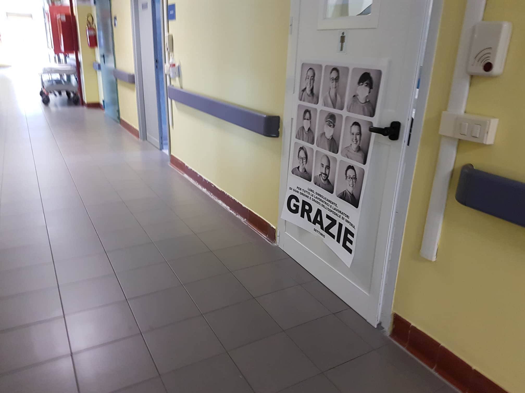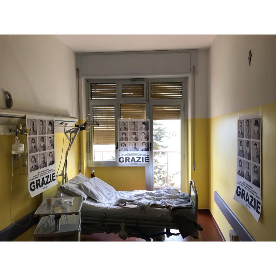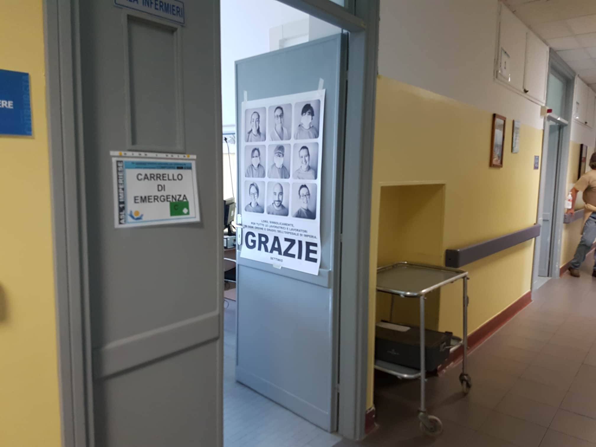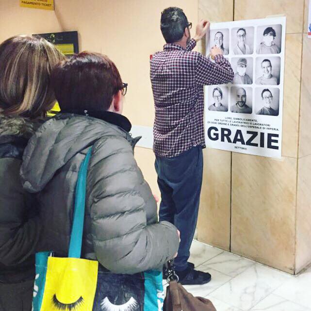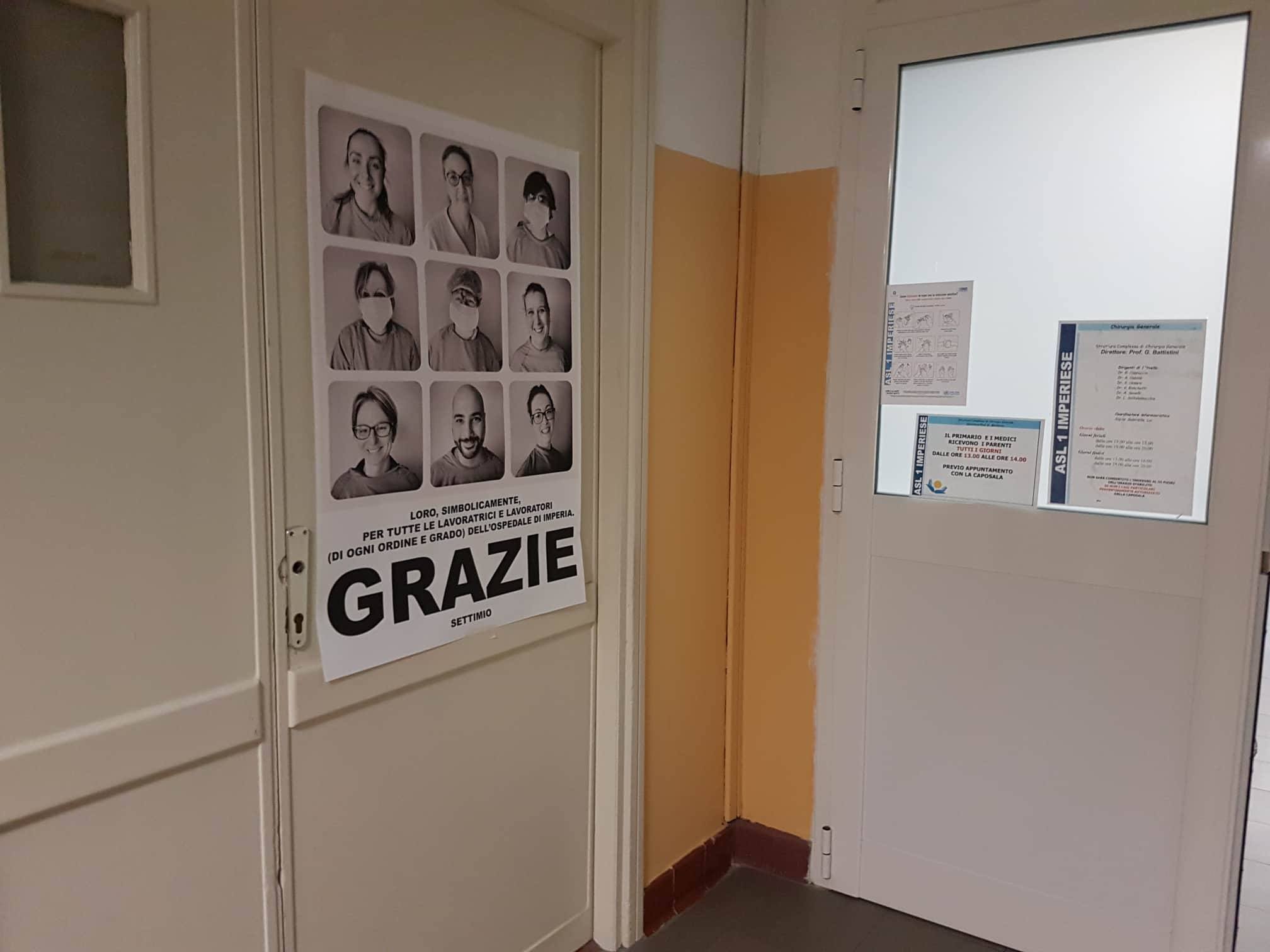 Poco prima di essere dimesso, il fotografo, desideroso di ringraziare tutti coloro che lo hanno assistito e curato, ha appeso numerosi poster in tutto il reparto, dove recita la scritta: “Grazie. Loro simbolicamente per tutte le lavoratrici e i lavoratori di ogni ordine e grado dell’Ospedale di Imperia”.