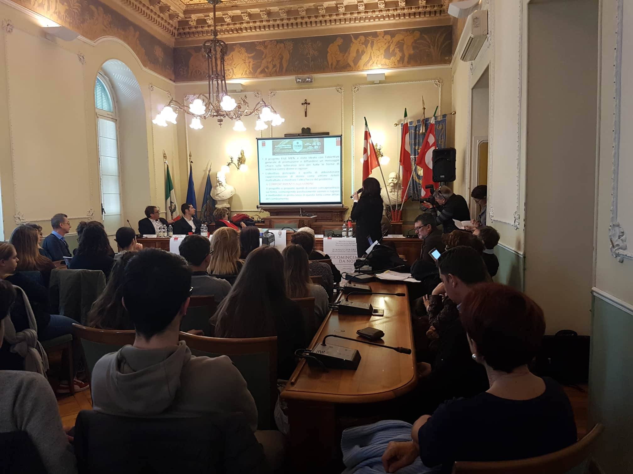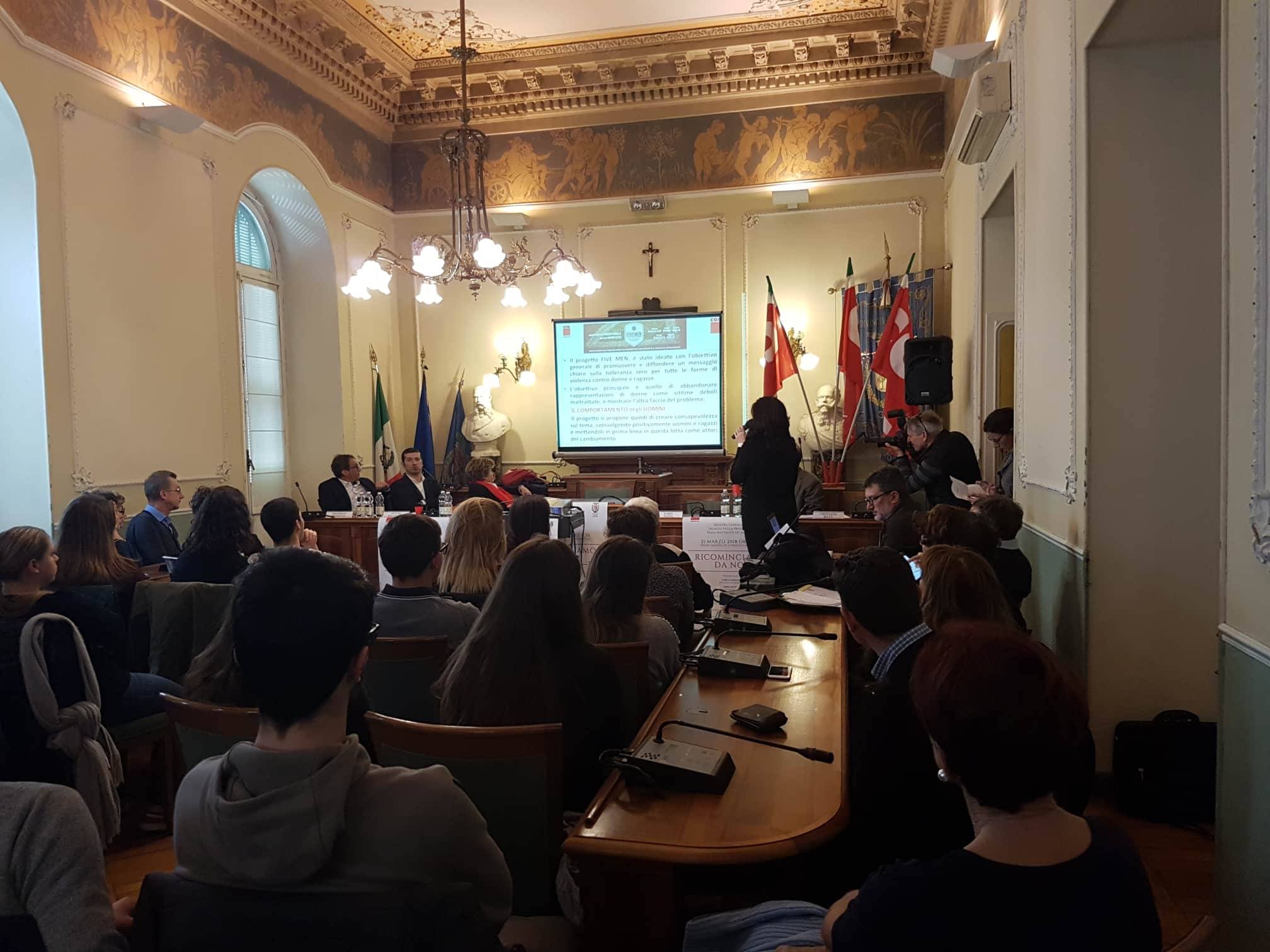 Durante la mattinata è stato proiettato il video #cosedauomini dal progetto FIVE MEN, finanziato dalla Commissione Europea e dal Dipartimento per le Pari Opportunità della Presidenza del Consiglio.