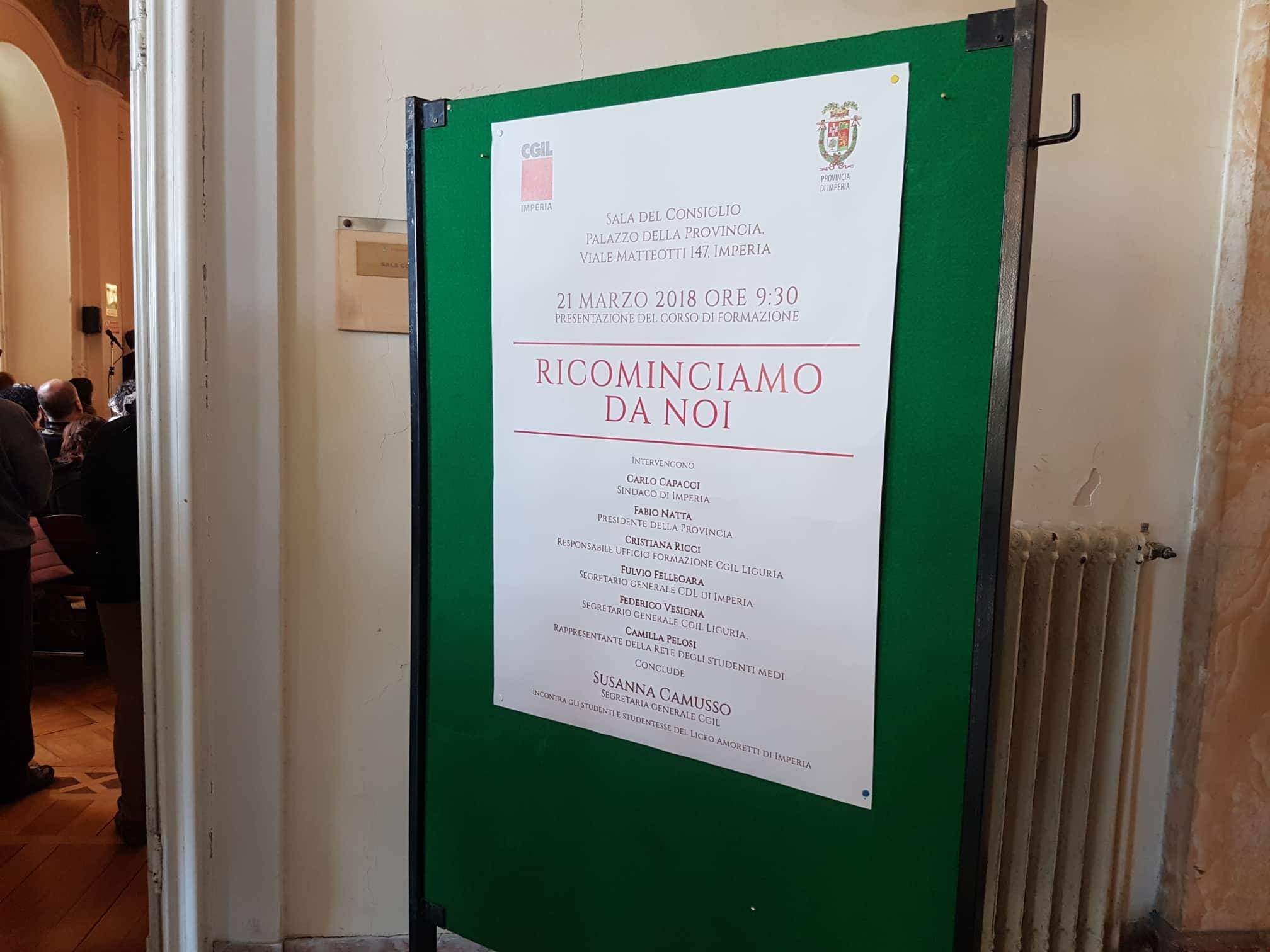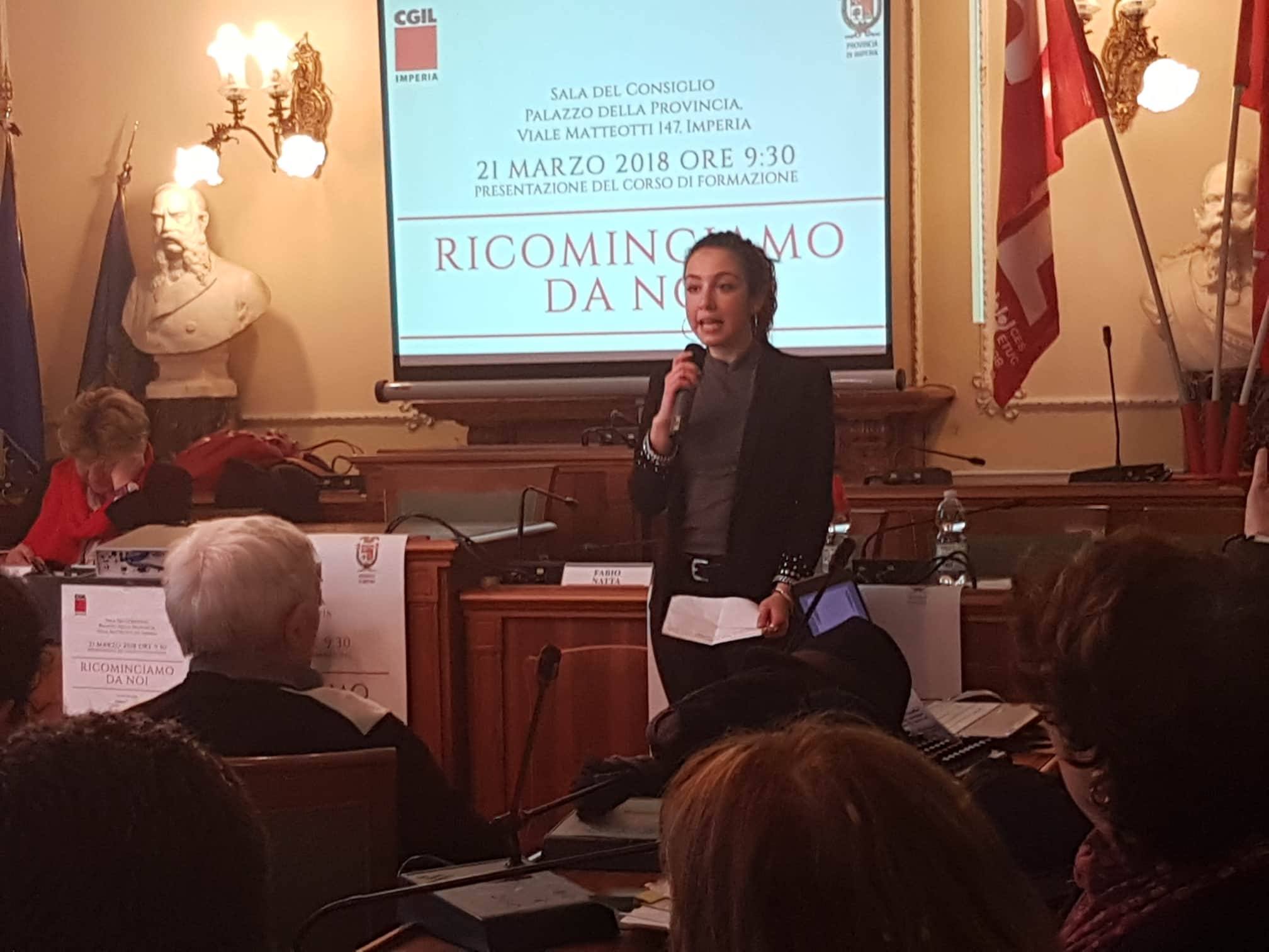 Si è svolta questa mattina, presso la Sala del Consiglio del Palazzo della Provincia a Imperia, la prima giornata del corso di formazione sindacale “Ricominciamo da noi. La contrattazione inclusiva: salvaguardare la dignità nel lavoro e nella vita, contrastare la violenza sulle donne”.