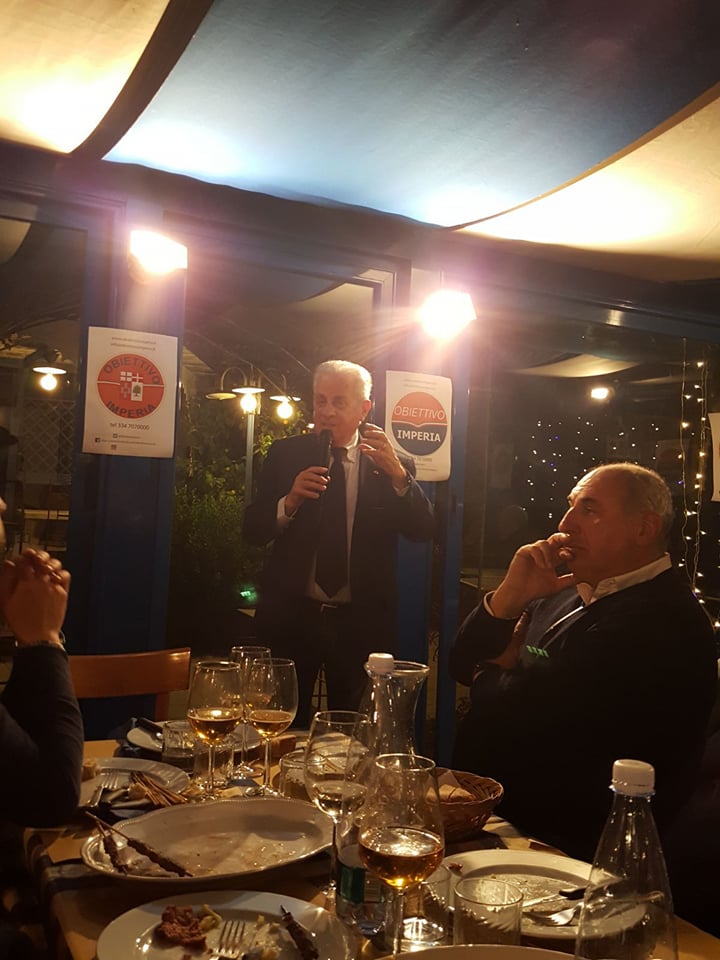 Si è tenuta ieri sera, venerdì 23 marzo, presso il locale “La Fontana Rosa” a Imperia, una cena elettorale organizzata dal neonato movimento politico “Obiettivo Imperia”. All’incontro era presente anche Claudio Scajola, elemento quest’ultimo che sembra sancire definitivamente l’appoggio all’ex Ministro, candidato Sindaco in vista delle elezioni comunali. Scajola nel corso della serata ha anche preso la parola per un breve intervento.