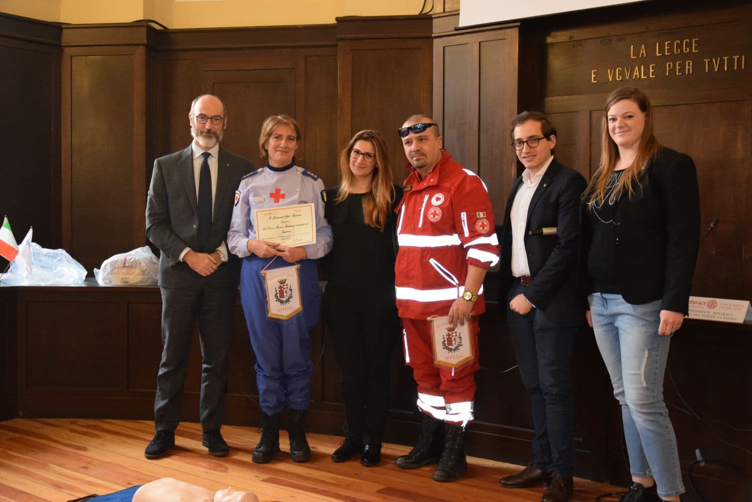 Relatore della conferenza il Dott. Antonello Ranise, cardiologo presso l’Ospedale di Imperia. La dimostrazione delle manovre di primo soccorso sono state effettuate dalla Croce Rossa Italiana, Comitato di Imperia.