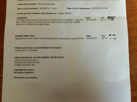 Una donna, circa 40enne, alcune settimane fa è finita addirittura all’Ospedale dopo che si è ferita al ginocchio nel tentativo di scappare dalle mucche che si trovavano nella sua campagna.