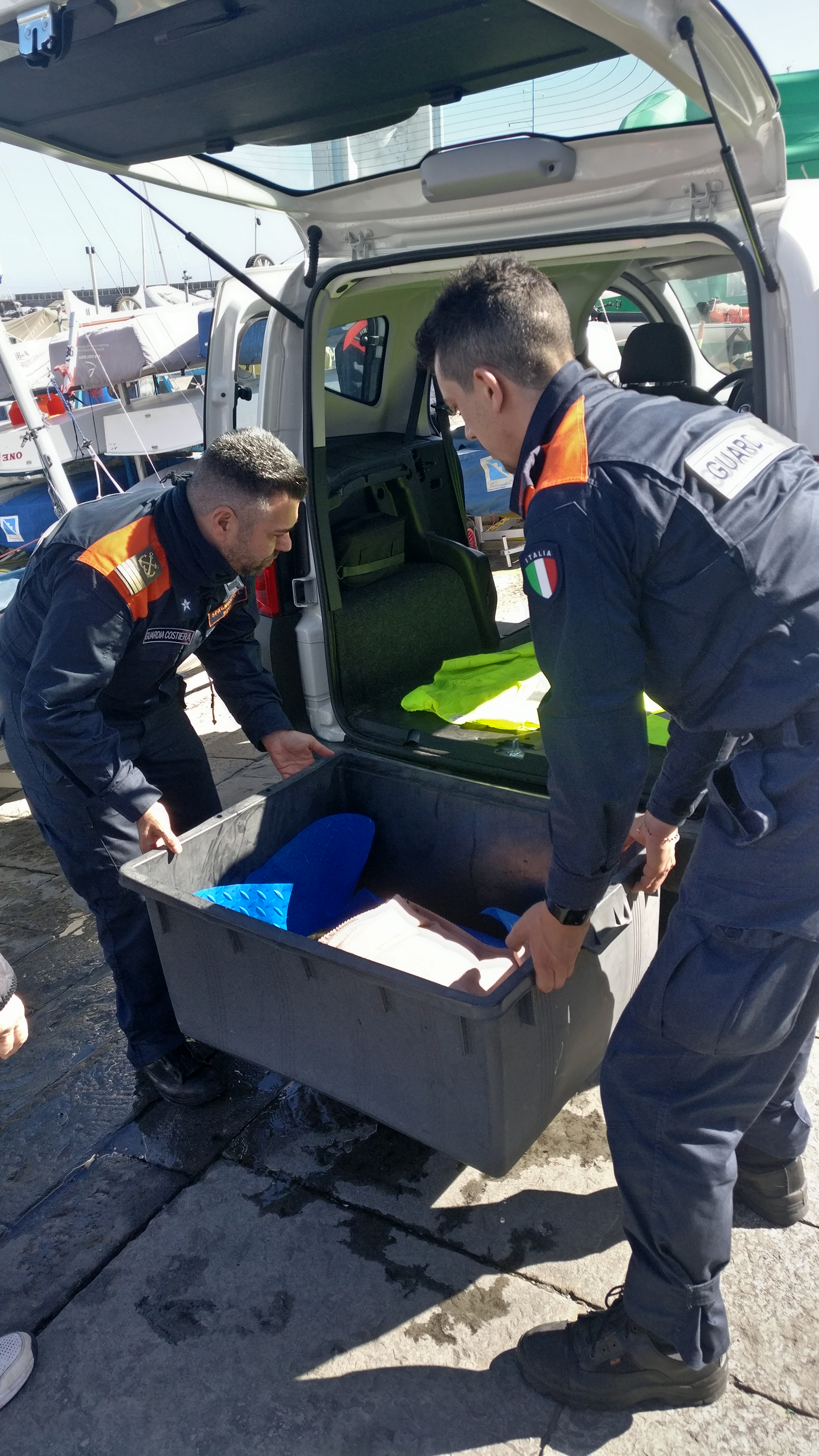 L’esemplare di “Caretta Caretta” è stato trovato galleggiante ed immobile, in evidente difficoltà, quindi portato a terra e consegnato al personale della Guardia Costiera di Sanremo. Il Comandante Fronte ed i suoi uomini hanno immediatamente preso contatti con i veterinari dell’Acquario di Genova per concordare la procedura più corretta da seguire per salvaguardare l’esemplare recuperato.