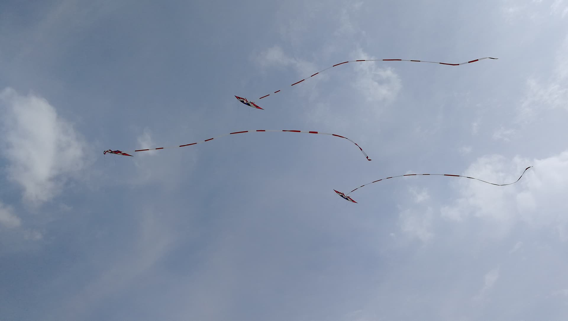 OSPITE D’ONORE 2018: Giovanni Govoni Trio da Bologna di ritorno dall’International Kite Festival Doha – Qatarha. Govoni pilota da solo 3 aquiloni acrobatici a 2 cavi, muovendoli indipendentemente e disegnando nel cielo figure sincronizzate che normalmente sono difficili da eseguire anche per 3 piloti. Guida un aquilone con la mano sinistra, un secondo con la mano destra e un terzo con una cintura fissata intorno alla vita.