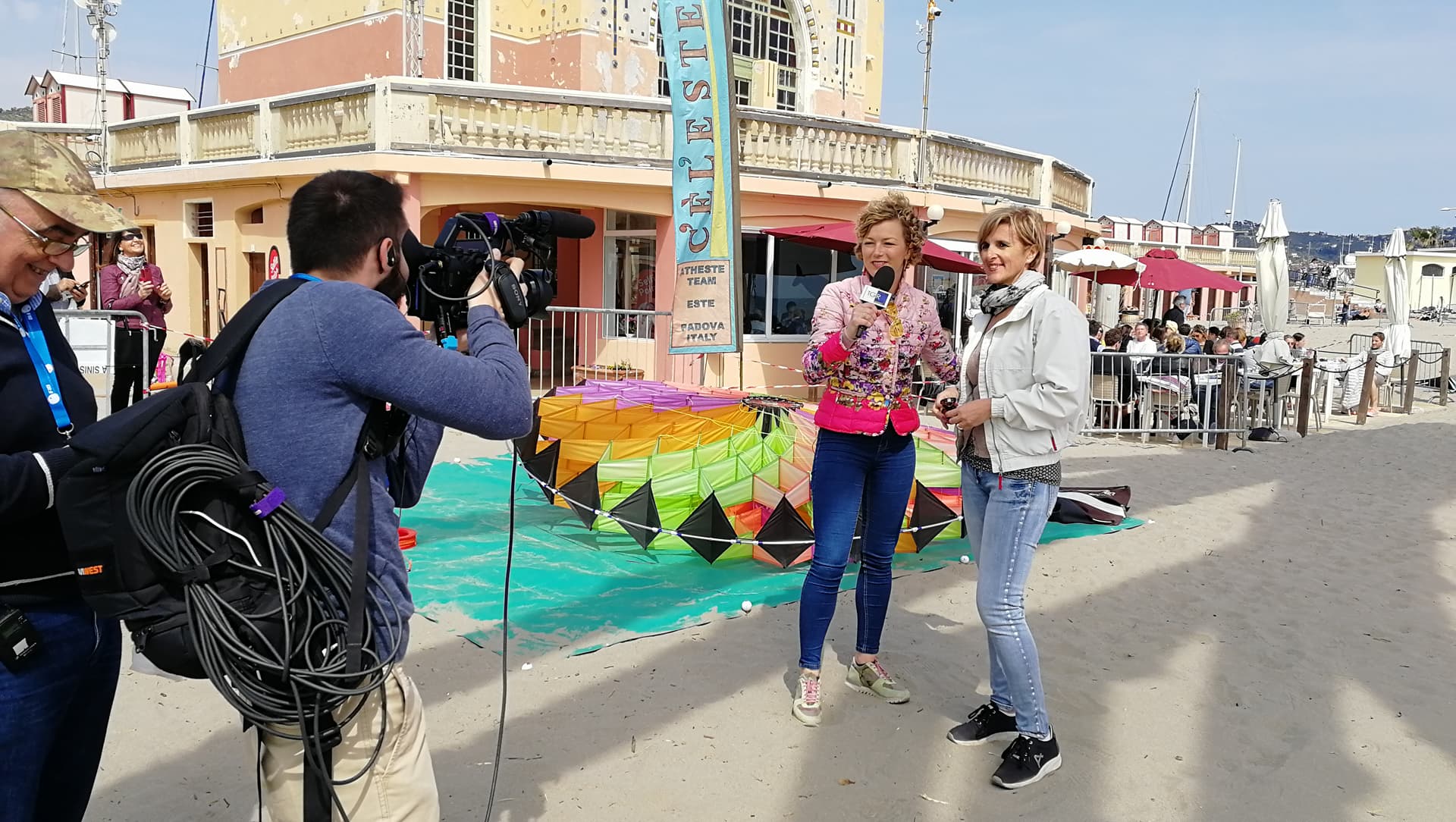 “È appena partita la 19esima edizione di Sol&vento a Borgo Marina. Ci sono gli aquiloni giganti in volo, le piovre, gli acrobatici, gli statici. Sono partiti i laboratori per i bambini per la costruzione degli aquiloni. Ci saranno giochi e musica. Siamo nel pieno della 19esima edizione che durerà due giorni”.