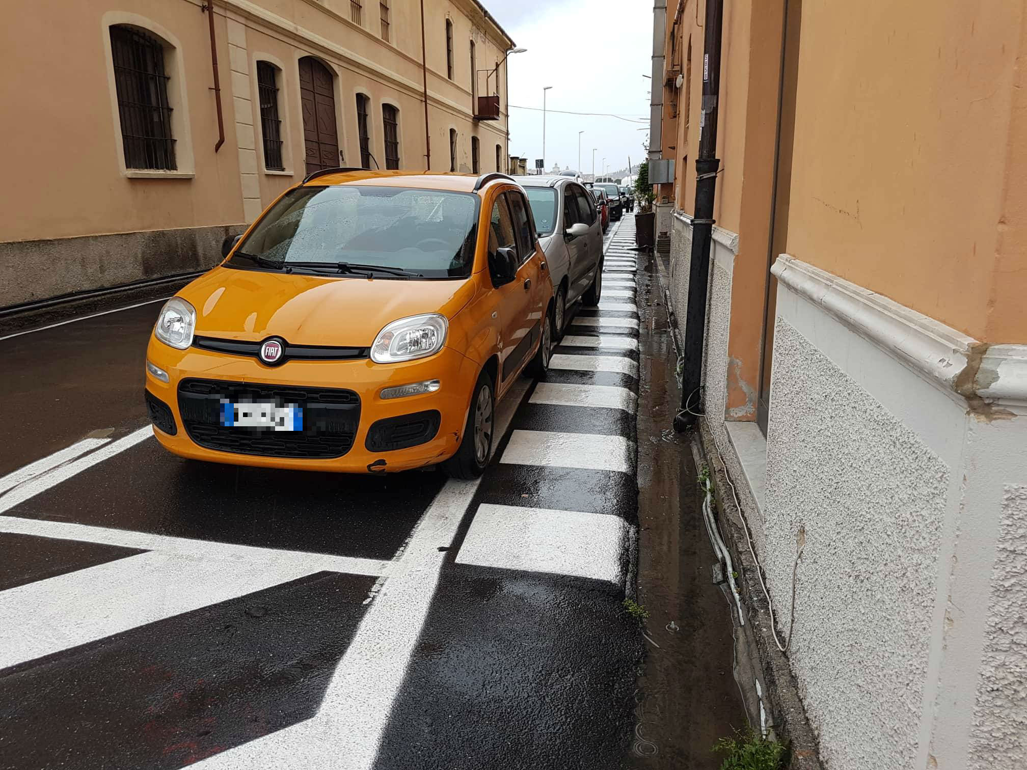 5) in adiacenza al passaggio pedonale di cui al punto 3) tra il civico 10 e l’intersezione con piazza De Amicis viene realizzata un’area di sosta per i veicoli che non eccedono dai limiti tracciati.