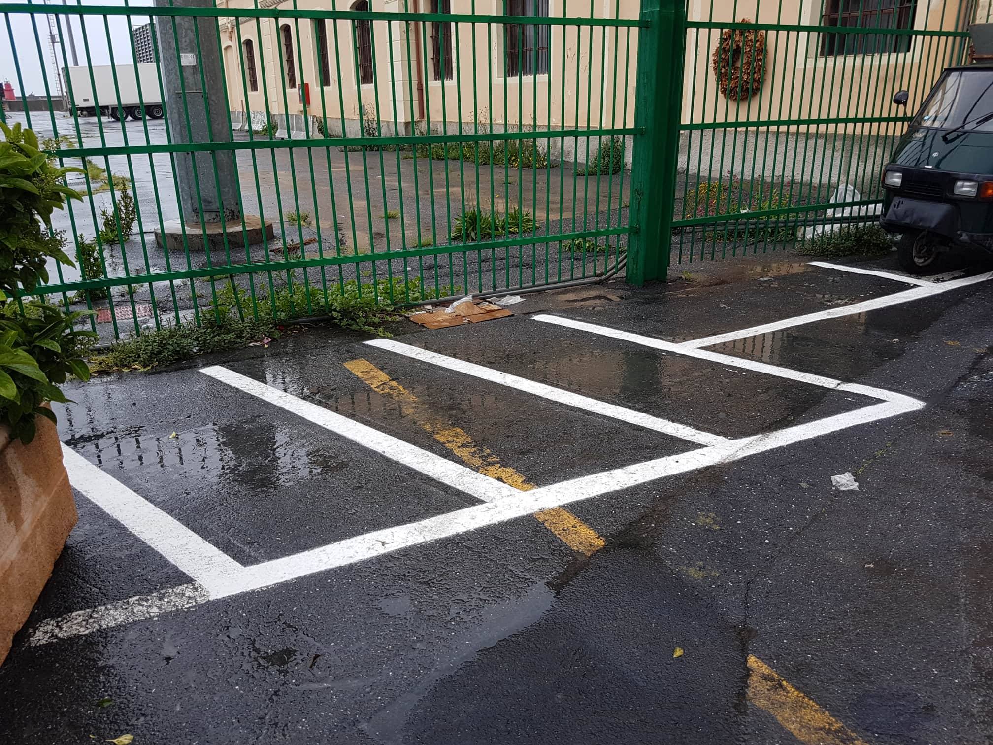 4) in adiacenza al passaggio pedonale di cui al punto 3) sono realizzati, a ponente del civico 12, tre stalli paralleli destinati alla sosta dei motocicli e ciclomotori.