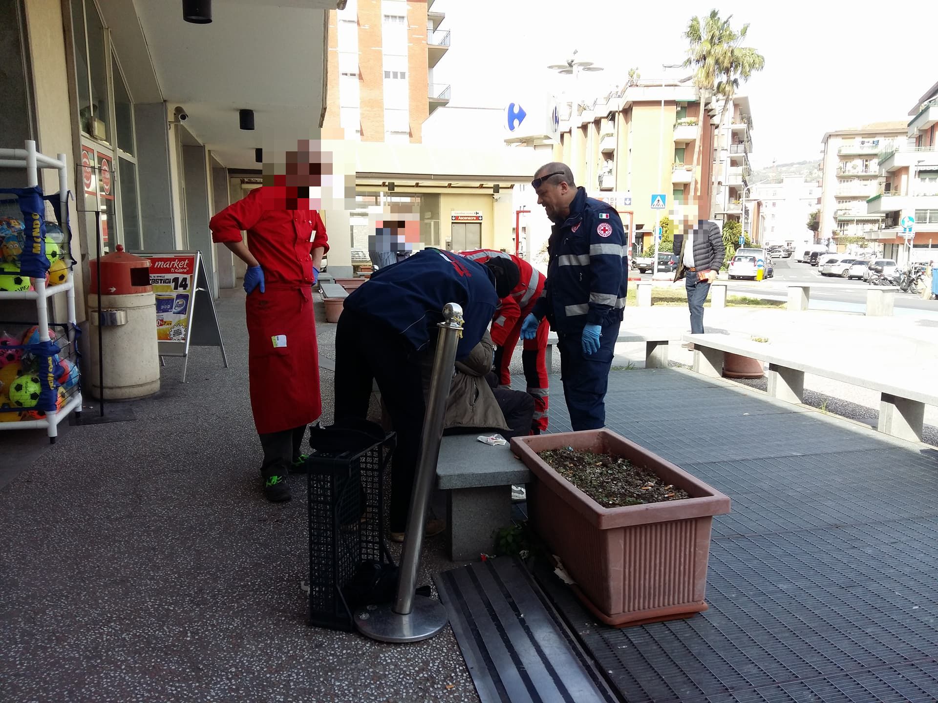 Clochard si ferisce alla testa cadendo davanti al Carrefour