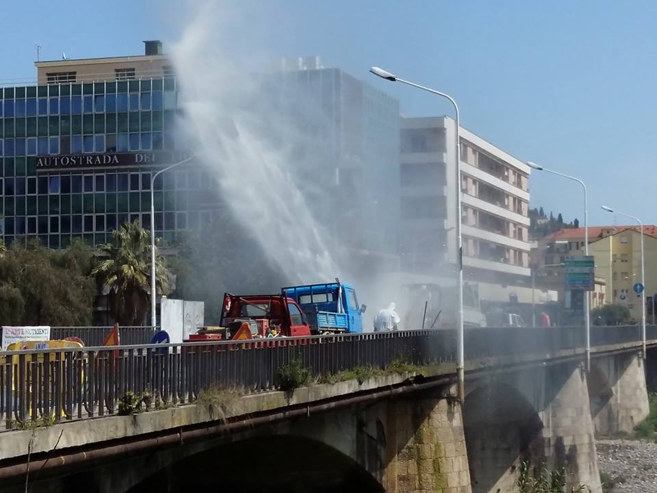 Ennesima rottura di una tubatura dell’acquedotto a Imperia. Questa volta il danno si è verificato sul ponte Impero. Sul posto, da questa mattina, sono al lavoro gli operai dell’Amat.