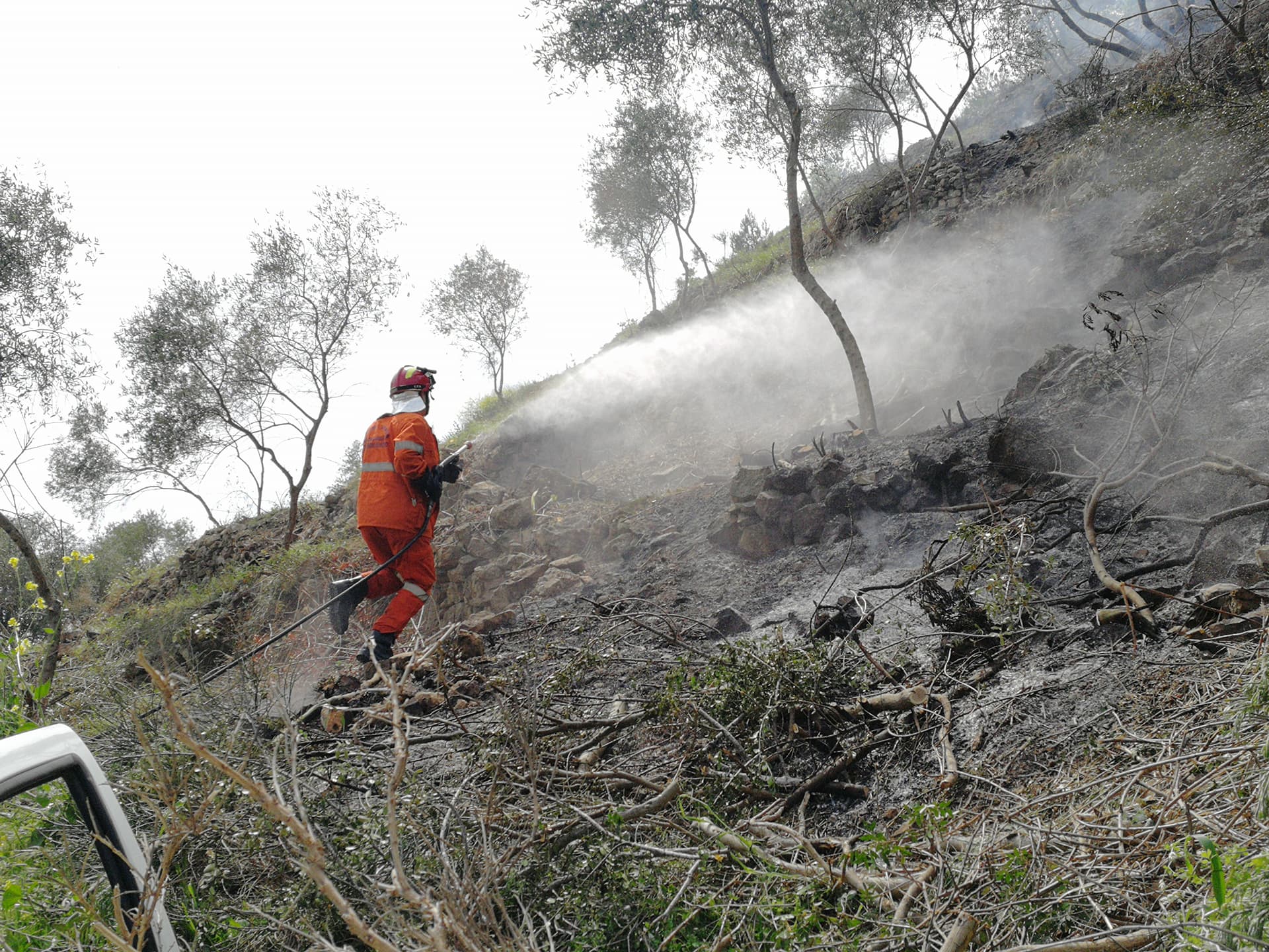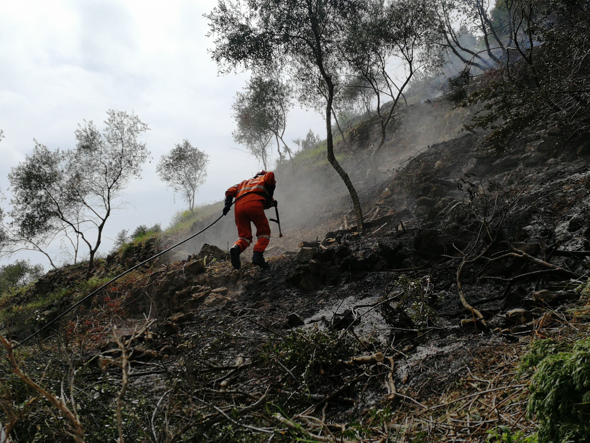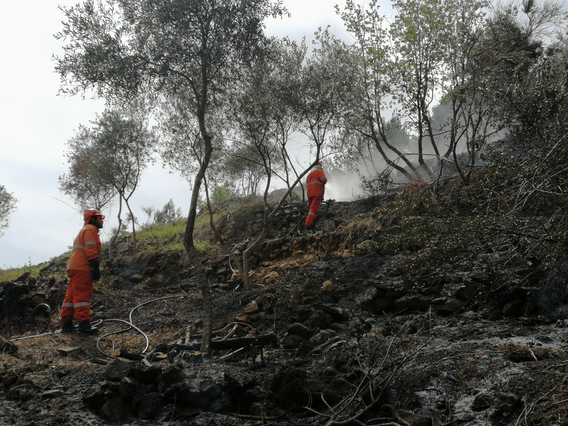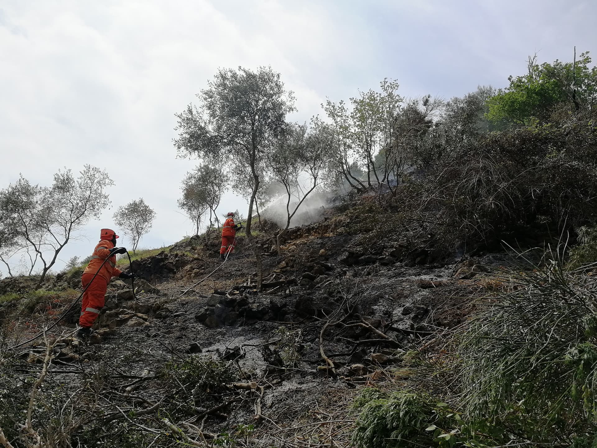Intervento dei Vigili del Fuoco e della Protezione Civile sulle alture di Costa d’Oneglia, in regione Panegai per lo scoppio di un incendio.