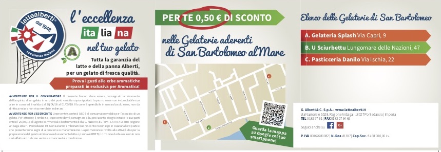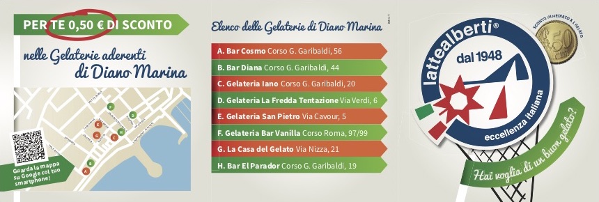 Durante i giorni della manifestazione, nelle ore centrali del pomeriggio, 2 hostess saranno presenti per le vie del centro e sulla passeggiata a mare di Diano Marina per distribuire dei flyer contenenti un buono sconto di Euro 0,50 sull’acquisto di un gelato nelle gelaterie del Golfo Dianese aderenti, facilmente individuabili grazie a una piccola mappa riportata sul buono.
