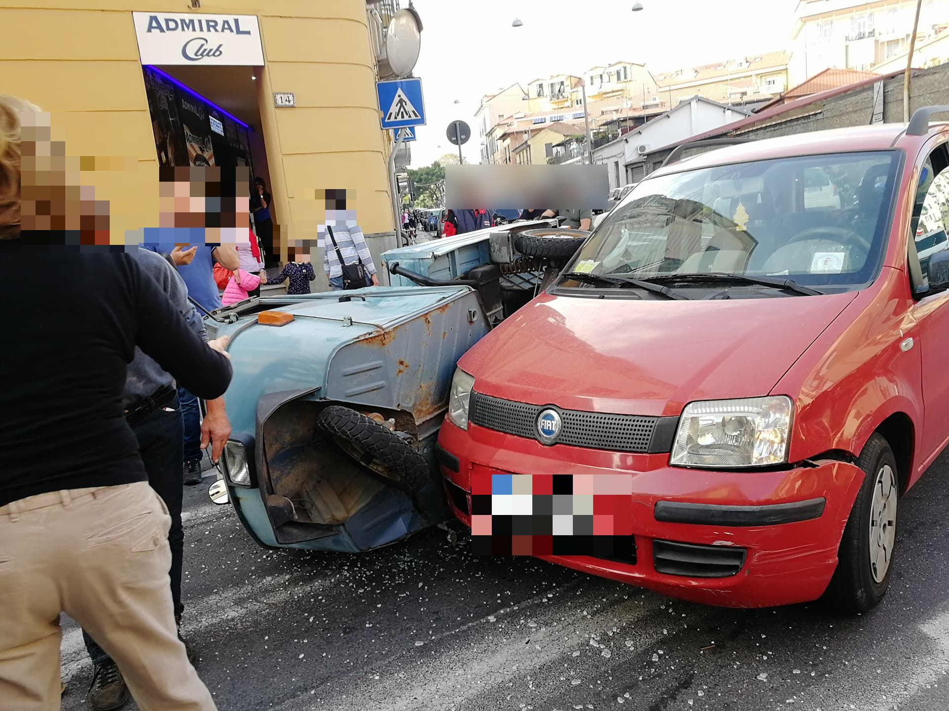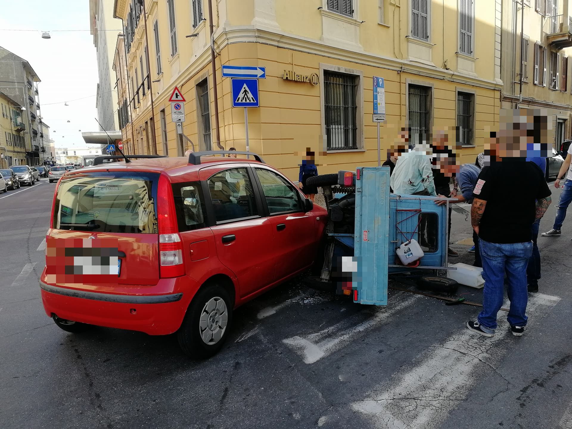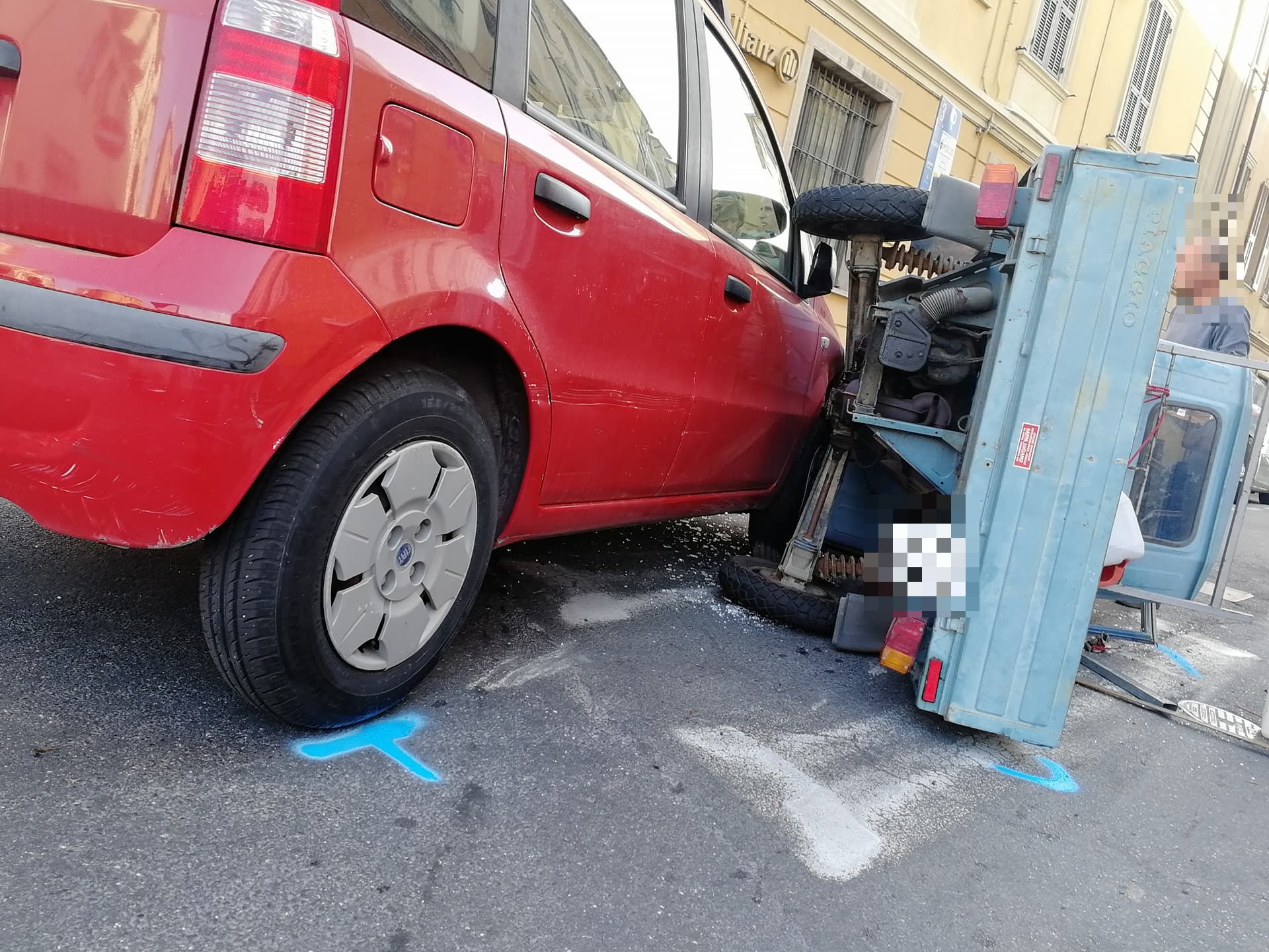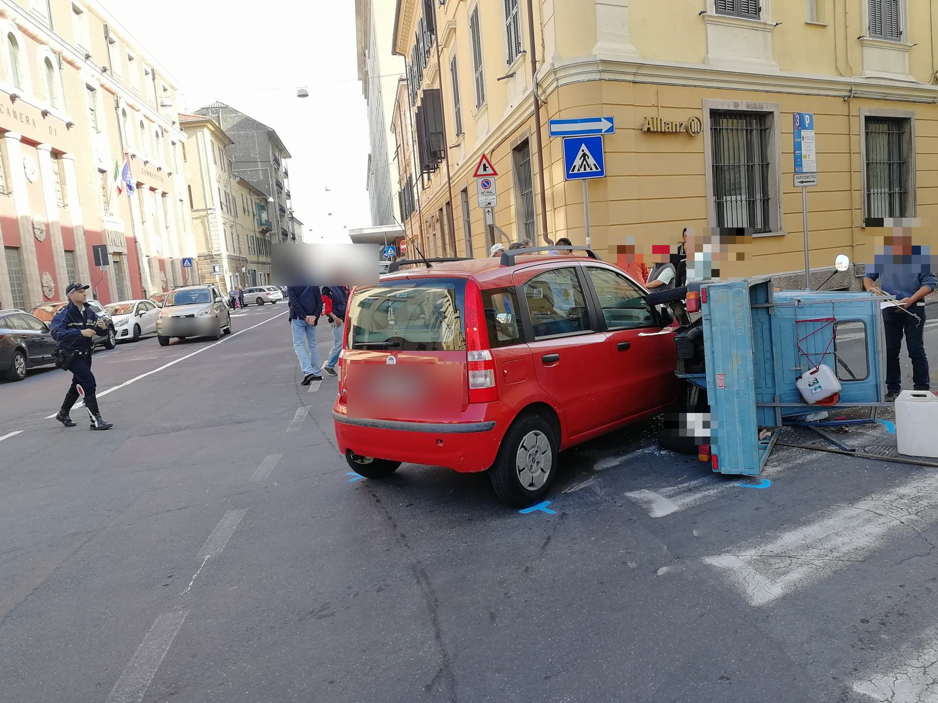 Secondo una prima ricostruzione, un’Ape Piaggio, con a bordo due uomini (il conducente R.B. di 67 anni e il passeggero di circa 70 anni), proveniente da via Schiva e impegnata a svoltare verso Porto Maurizio, si è scontrata, per cause ancora in fase di accertamento, con una Fiat Panda, condotta da una donna, 72enne, proveniente da via Alfieri, anch’essa diretta verso Porto Maurizio. L’Ape, a causa dell’impatto, si è cappottata su un lato.