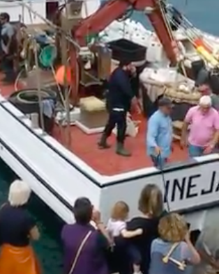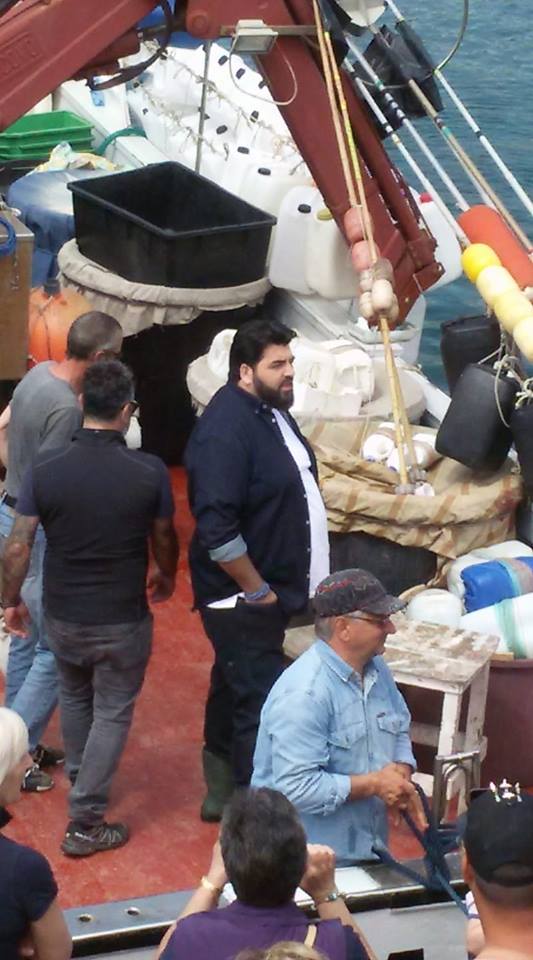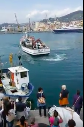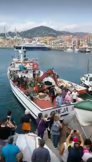 Nella mattinata di oggi, le riprese si sono spostate a bordo del caratteristico peschereccio “Ineja II” che, verso le 12, ha attraccato al porto di Oneglia, dove si era nel frattempo radunata una folla che ha accolto calorosamente lo chef.