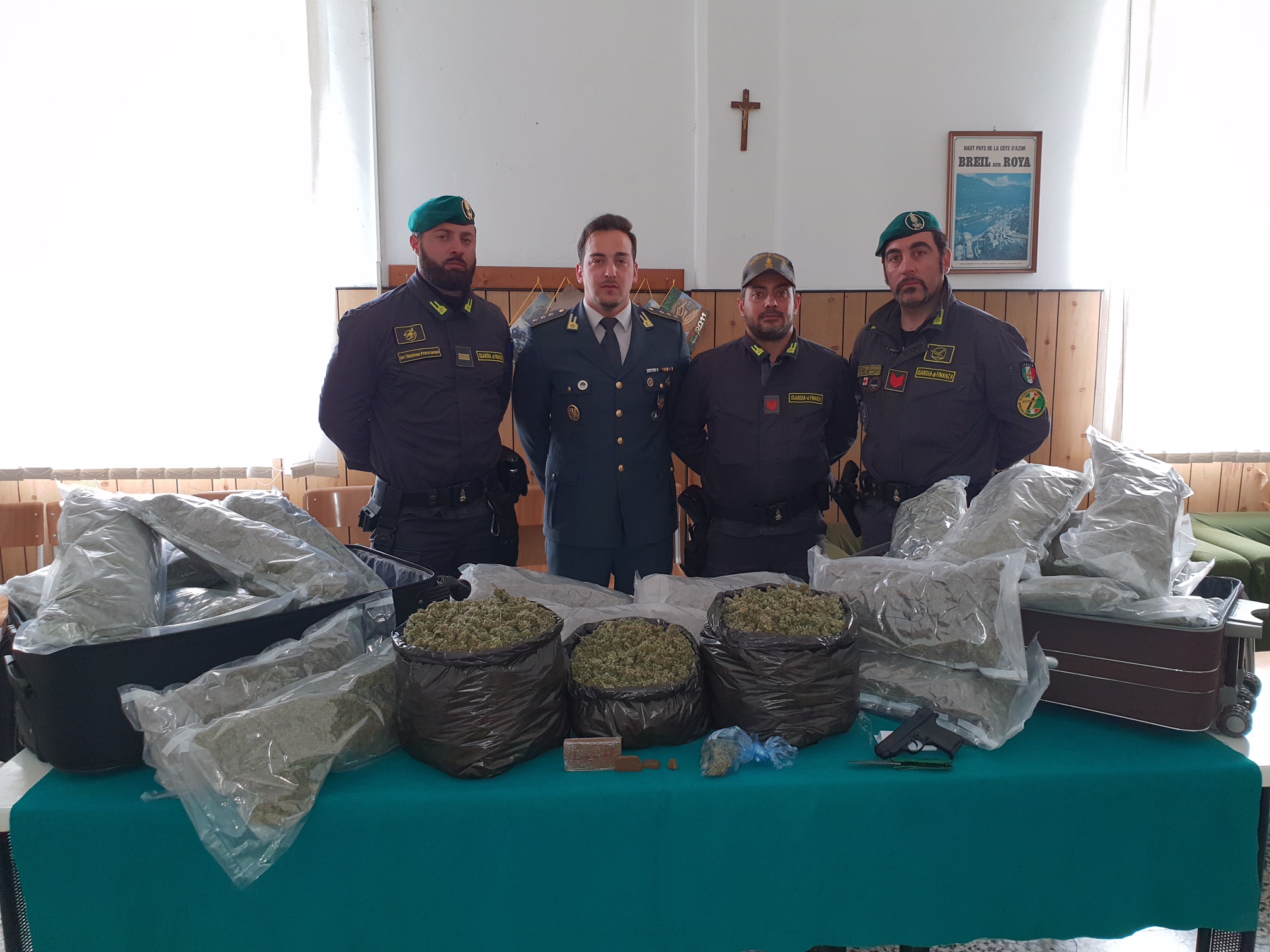 Tutta la sostanza stupefacente è stata quindi sequestrata, insieme all’automezzo, a 530 € e ad una pistola giocattolo priva del tappo rosso all’estremità; i due uomini sono stati arrestati in flagranza del reato di traffico internazionale di sostanze stupefacenti e sono stati condotti in carcere a disposizione dell’Autorità Giudiziaria.