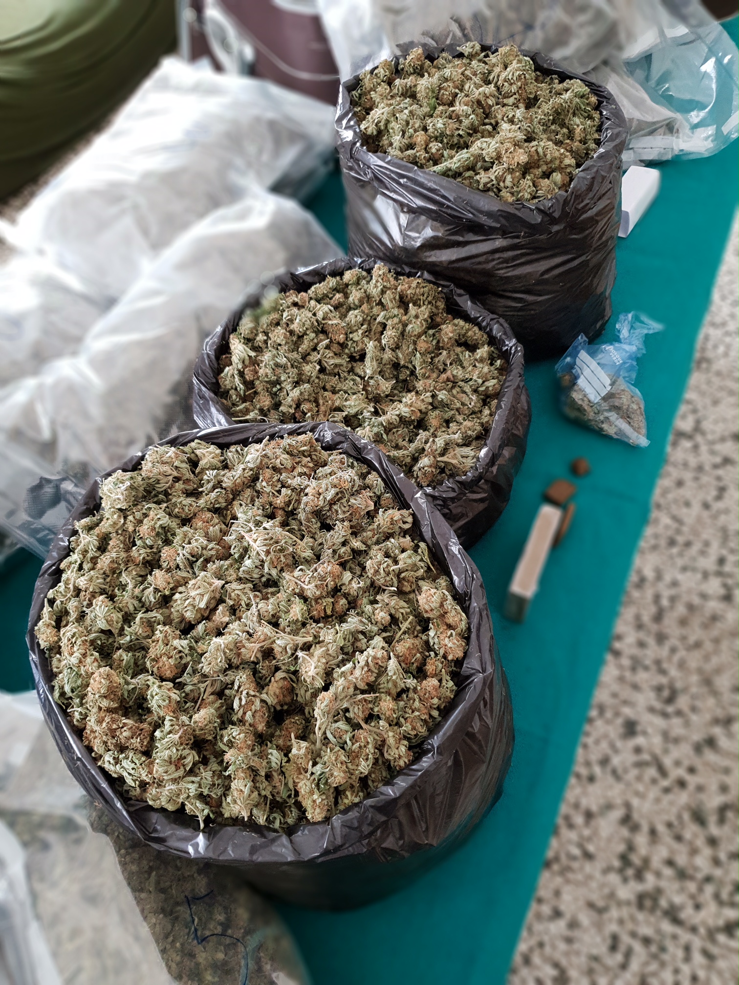 Tali presupposti sono bastati a far scattare un accurato controllo da parte dell’unità cinofila che, grazie al fiuto del cane anti droga “Pakros”, ha rinvenuto fra la merce trasportata 3 borsoni e una grande scatola di cartone stracolmi di marijuana, quantificata in 20,9 kg, occultati dai molti strati di plastica che coprivano il pallet. Ma il fiuto di “Pakros” non si è fermato li: dopo il consueto giro di ricognizione del mezzo di trasporto, il pastore tedesco ha segnalato anche l’abitacolo, permettendo così di individuare, nascosto sotto al sedile del guidatore, un ulteriore panetto di 114,8 grammi di Hashish.