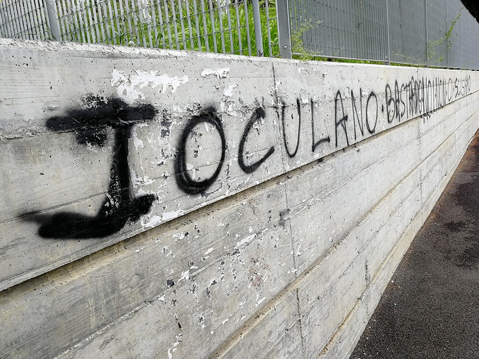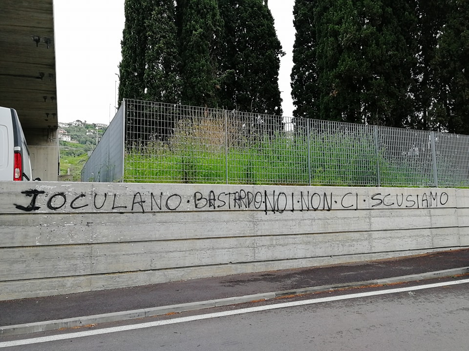 A circa 2 settimane dalla sentenza, è comparsa una scritta, probabilmente realizzata con una bomboletta spray nera, che riporta le parole “Ioculano bastardo, noi non ci scusiamo”. Sono ancora ignoti gli autori del gesto, ma non si esclude che le forze dell’ordine visioneranno i filmati delle eventuali telecamere presenti nella zona per risalire ai responsabili.