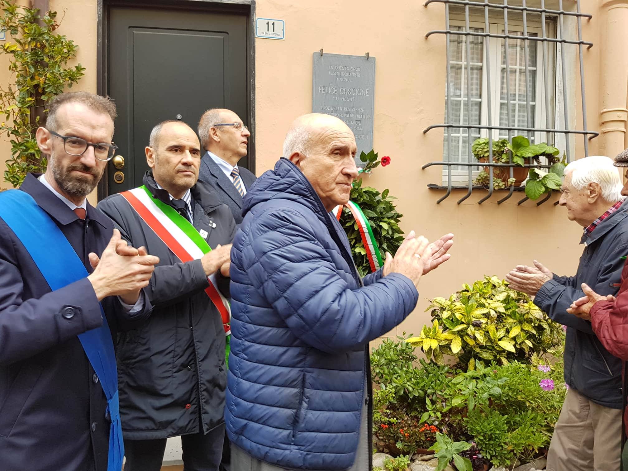“Siamo stati felici di dare il nostro patrocinio come Provincia di Imperia , di essere presenti con il gonfalone decorato con la medaglia d’oro al valore militare proprio per la guerra di liberazione a questo anniversario, anniversario di una nascita di cento anni fa di Felice Cascione.