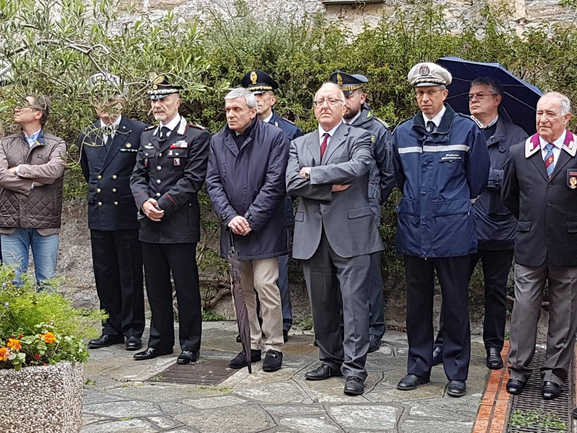 Presenti le più alte cariche civili e militari della provincia di Imperia. Particolarmente toccanti gli interventi di Miro Genovese, 95 anni, e Tonino Simonti, 94 anni, reduci partigiani e amici di Cascione.