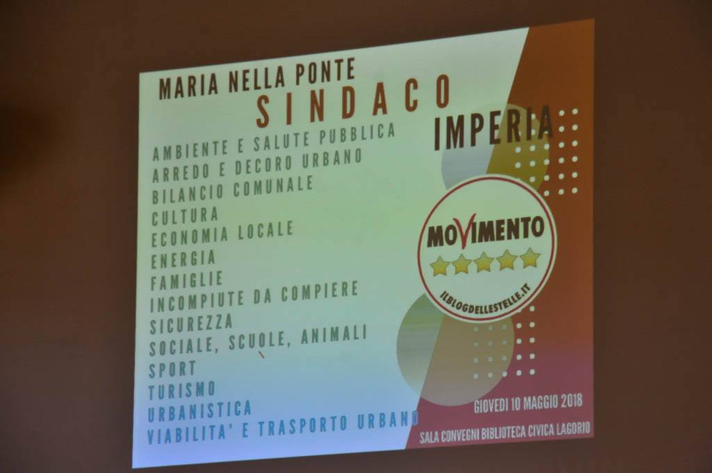 Si è tenuta questa mattina, presso la Biblioteca Civica Lagorio a Imperia, la presentazione della lista del Movimento Cinque Stelle per le elezioni comunali del prossimo 10 giugno. Alla presenza del candidato Sindaco Maria Nella Ponte e del capogruppo del M5S in consiglio regionale Alice Salvatore, sono stati presentati uno a uno tutti i candidati, alcuni dei quali, presenti in sala, hanno anche preso la parola.