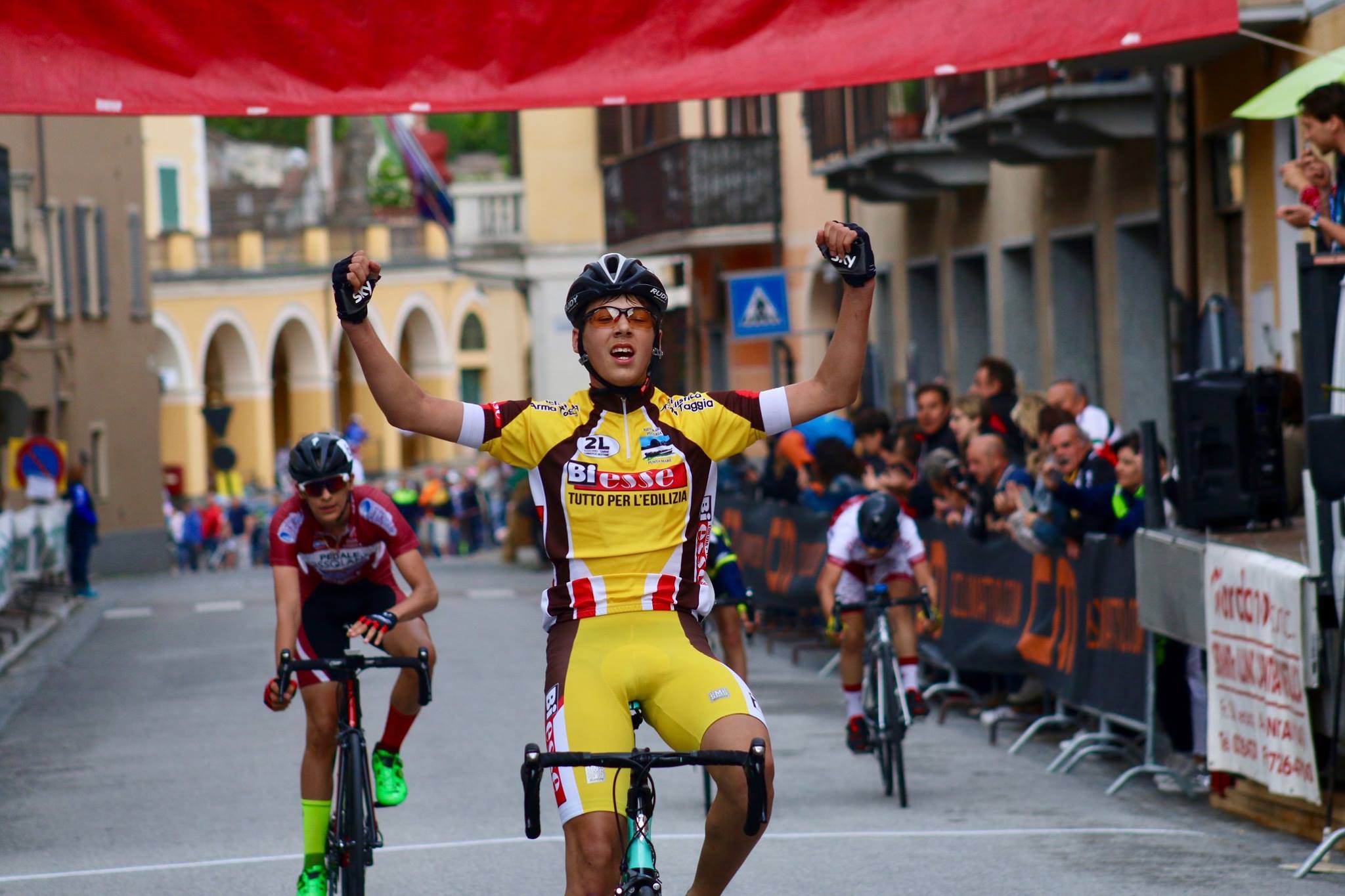 Per quanto riguarda gli esordienti c’è davvero molta soddisfazione nel potersi godere le gesta ciclistiche di questi ragazzi della Ciclistica Armataggia che danno tutto se stessi per migliorare corsa dopo corsa. Il mattatore di giornata è stato senza ombra di dubbio il Grande GABRIELE Defabritiis che , dopo essere entrato nella fuga di otto corridori è riuscito all’ultimo km a distaccarli e ad arrivare così solitario a braccia alzate sul traguardo, così ripagato dell impegno settimanale nell’allenamento. Altrettanto buona la prova del resto della squadra che ha piazzato nella prima parte del folto gruppo gli altri cinque atleti.