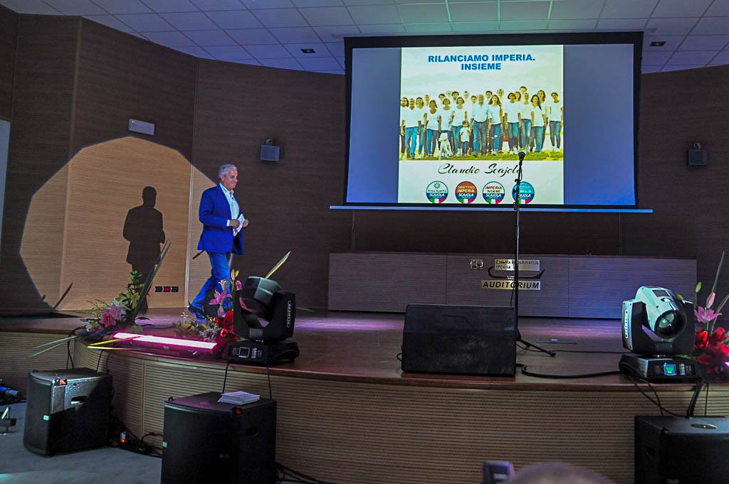 Auditorium gremito questa sera alla Camera di Commercio, per la presentazione ufficiale dei 117 candidati delle quattro liste civiche a sostegno di Claudio Scajola, candidato sindaco di Imperia alle prossime elezioni comunali.