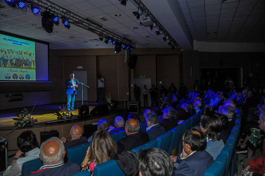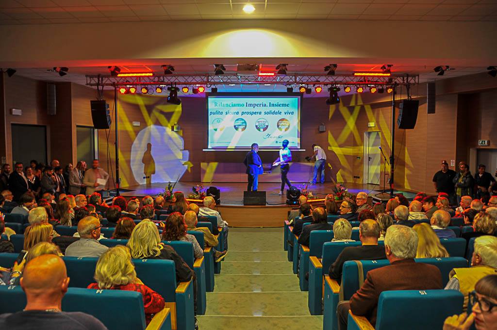“Queste liste guardano verso il futuro consapevoli dei nostri doveri e dei nostri diritti. Mi pare che emanino la freschezza, l’entusiasmo delle persone raffigurate, orgogliose della loro indipendenza e autonomia. Tutto il gruppo si mette in cammino verso il futuro insieme a me. Io sono orgoglioso di loro, di voi e degli imperiesi. Come potrei sentirmi un uomo solo al comando, con queste belle squadre di candidati che hanno sfilato, si può dire che sono un uomo solo? Con centinaia di volontari che hanno tenuto aperto i nostri point, che hanno collaborato con entusiasmo nei nostri incontri. Tanti miei amici coetanei, non più giovani, con i quali ho condiviso un periodo della mia vita, impegnati insieme nell’attività amministrativa della nostra città, con accordi e screzi, ma con l’obiettivo di fare qualcosa di buono per la nostra città.
