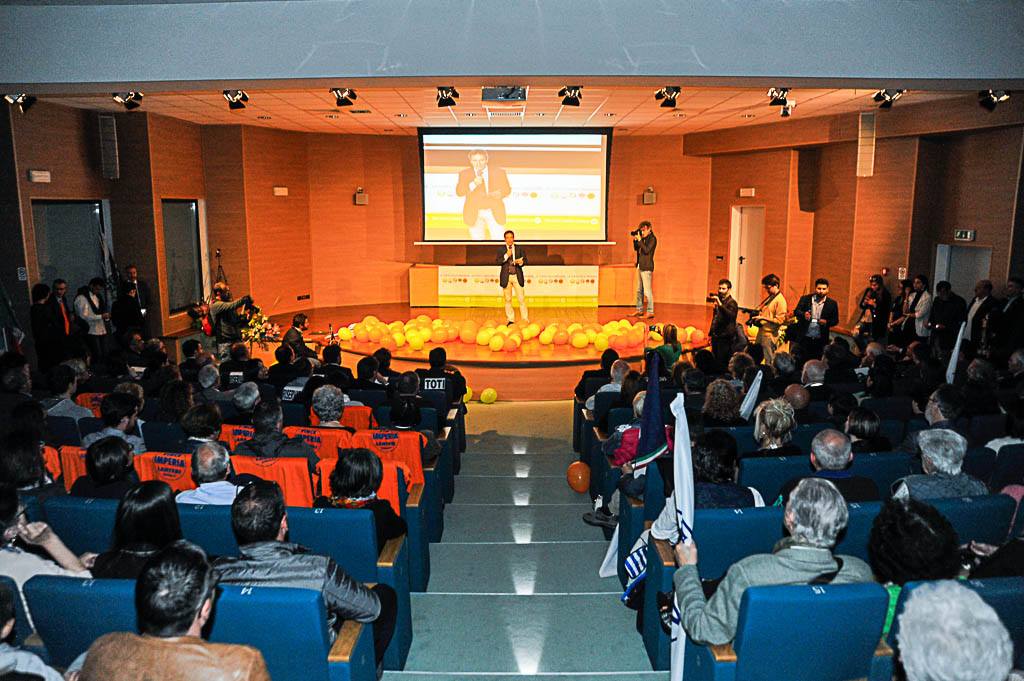 Auditorium gremito nel pomeriggio di oggi alla Camera di Commercio di Imperia, per la presentazione dei 152 candidati all’interno delle 5 liste a sostegno del candidato sindaco del centrodestra Luca Lanteri.
