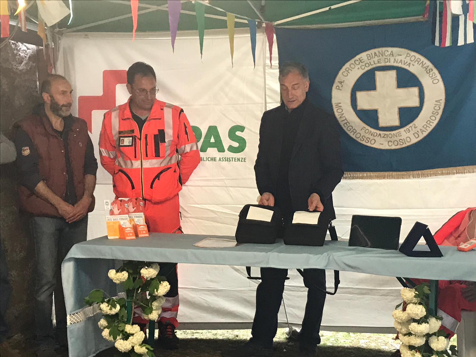 Il sistema, acquistato dalla Croce Bianca grazie alle donazioni di Compagnia stabile “Tutti esauriti”, delle corali di Cosio d’Arroscia, Mendatica e Rezzo e di Giangiacomo Pario, è stato dedicato a due persone molto importanti per il sodalizio e recentemente scomparse: Antonio Ramò e Renzo Marini.