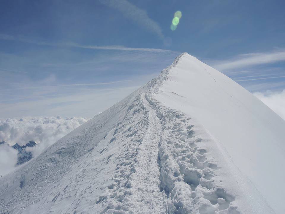 “La parte più difficile è stata la spalla del Dome Du Gouter, poiché era ghiacciata. Abbiamo dovuto fare 100 metri in conserva protetta, usando viti da ghiaccio e tiri con la corda in progressione. Questo è stato possibile grazie all’attrezzatura che avevamo portato.