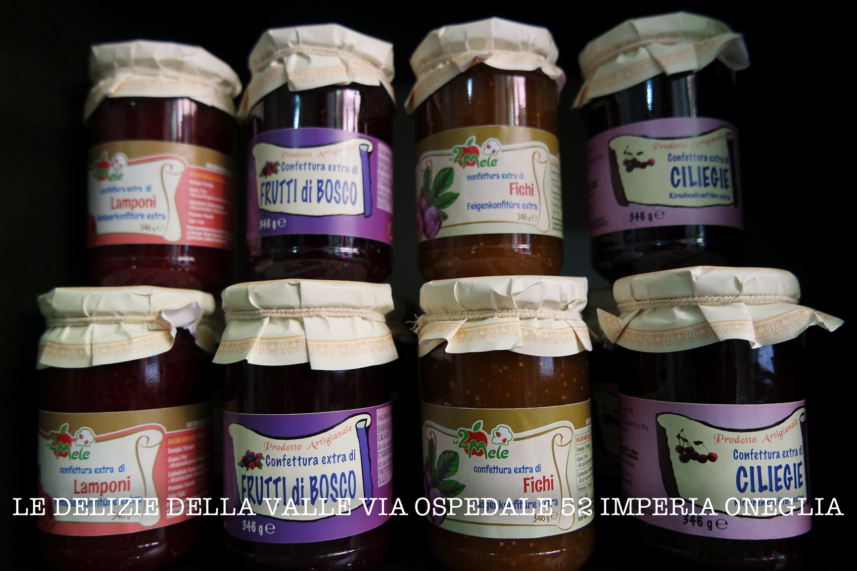 - Marmellate e confetture, frutta sciroppata e gelatine di vino per formaggi dell’azienda “Le 2 Mele”.