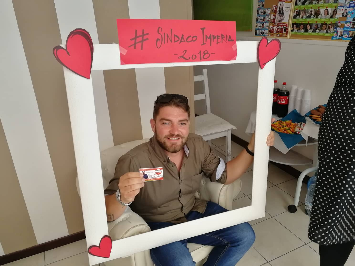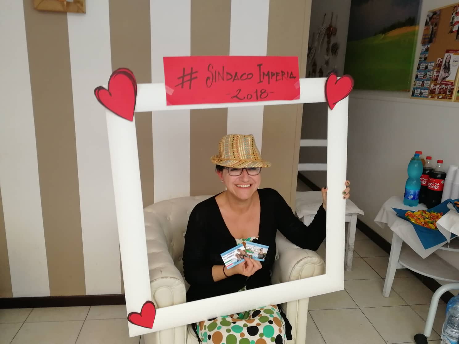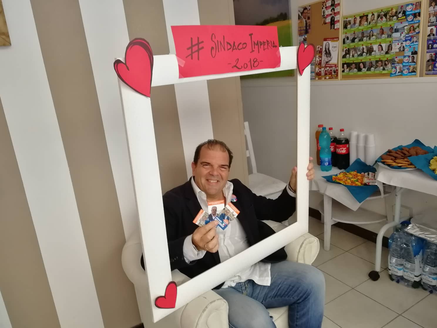 I candidati portano i loro santini, qualcuno ci mancava. Per i candidati che sono venuti, ne abbiamo approfittato per mettere in pratica un’idea dell’ultimo momento, il santino vivente. In pratica con una cornice bianca, tenuta dallo stesso candidato, realizziamo un santino con il candidato, apposta per questo evento”.