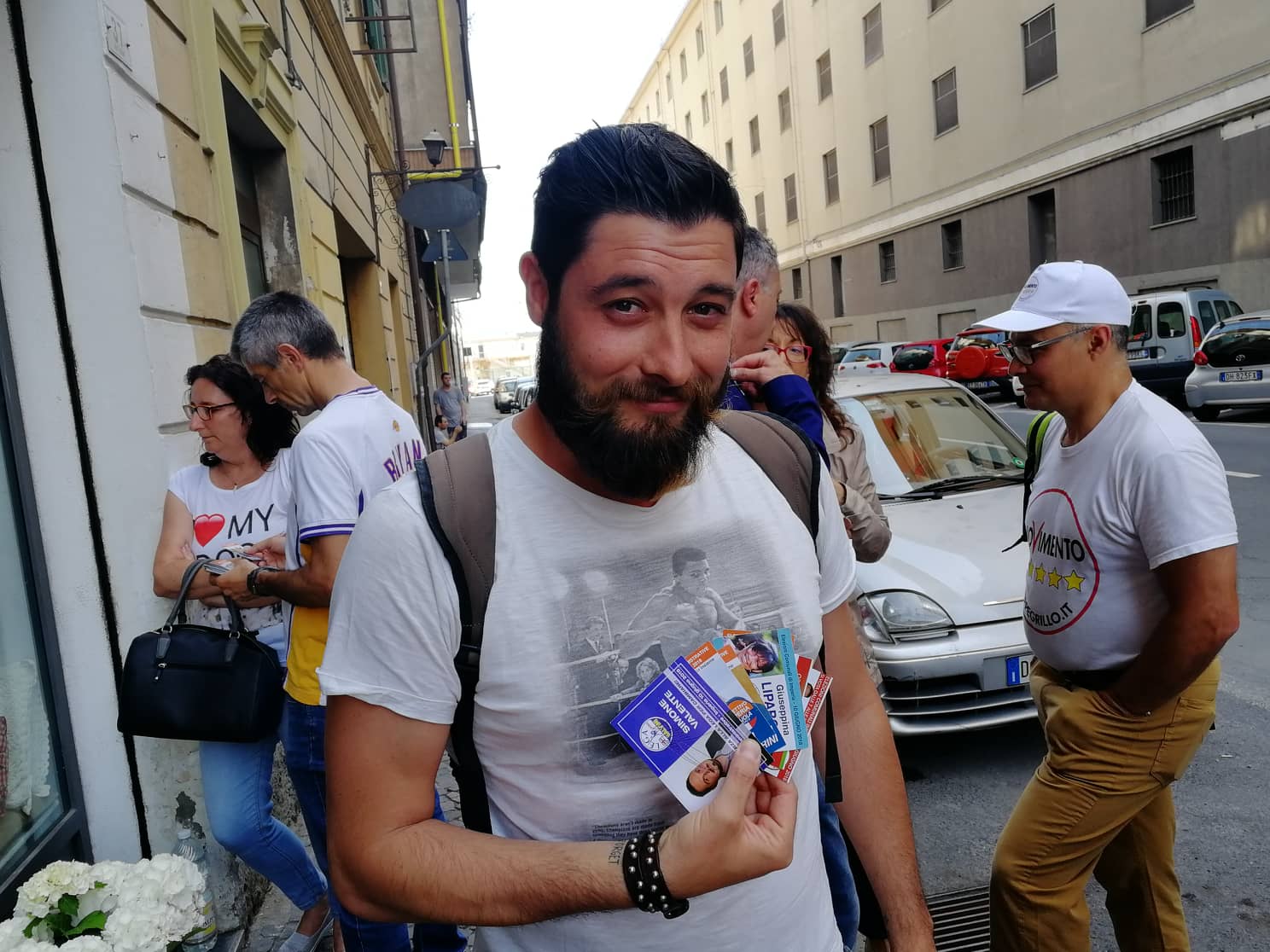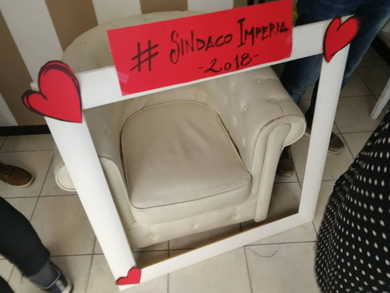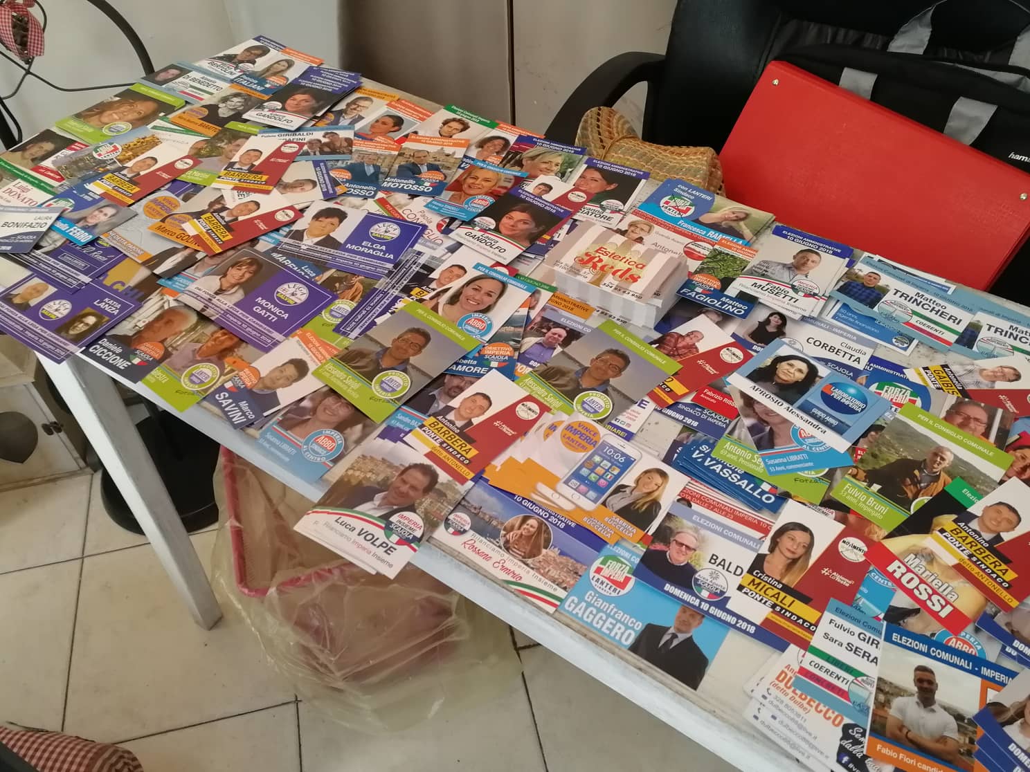 I candidati portano i loro santini, qualcuno ci mancava. Per i candidati che sono venuti, ne abbiamo approfittato per mettere in pratica un’idea dell’ultimo momento, il santino vivente. In pratica con una cornice bianca, tenuta dallo stesso candidato, realizziamo un santino con il candidato, apposta per questo evento”.
