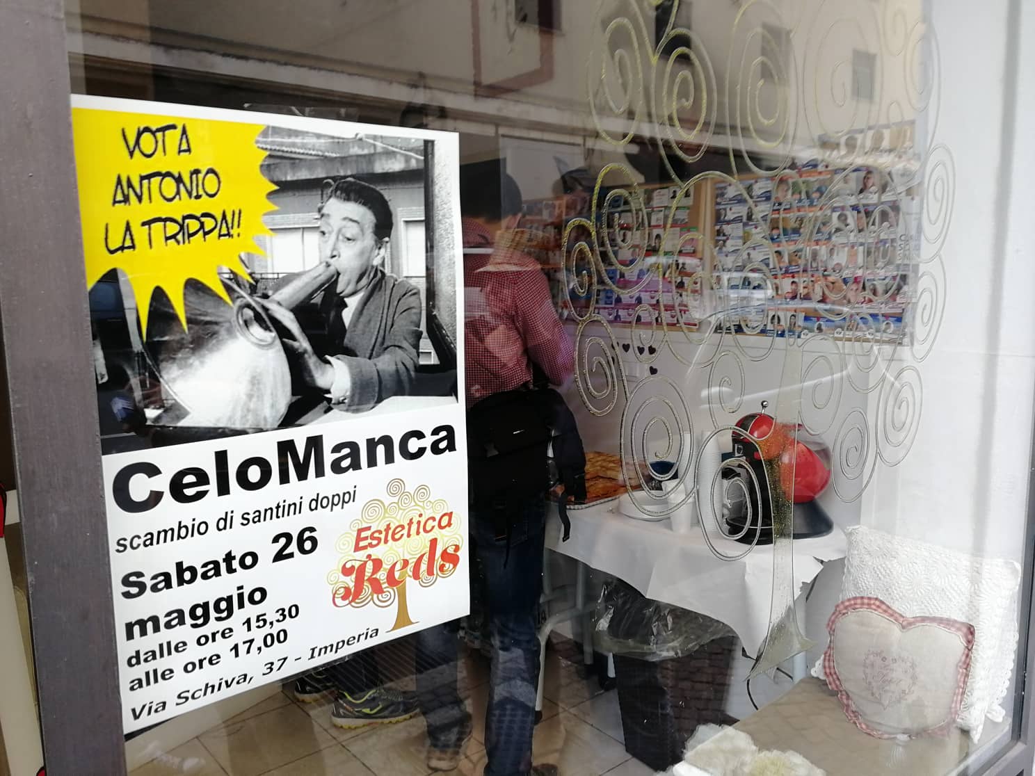 Si è tenuto questo pomeriggio, in via Schiva, l’evento “Celomanca” per lo scambio di santini elettorali doppi. Un’iniziativa lanciata da Luigi Mattioli, che ha riscontrato un grande successo tra candidati e non. Un modo originale e divertente per sdrammatizzare la campagna elettorale.