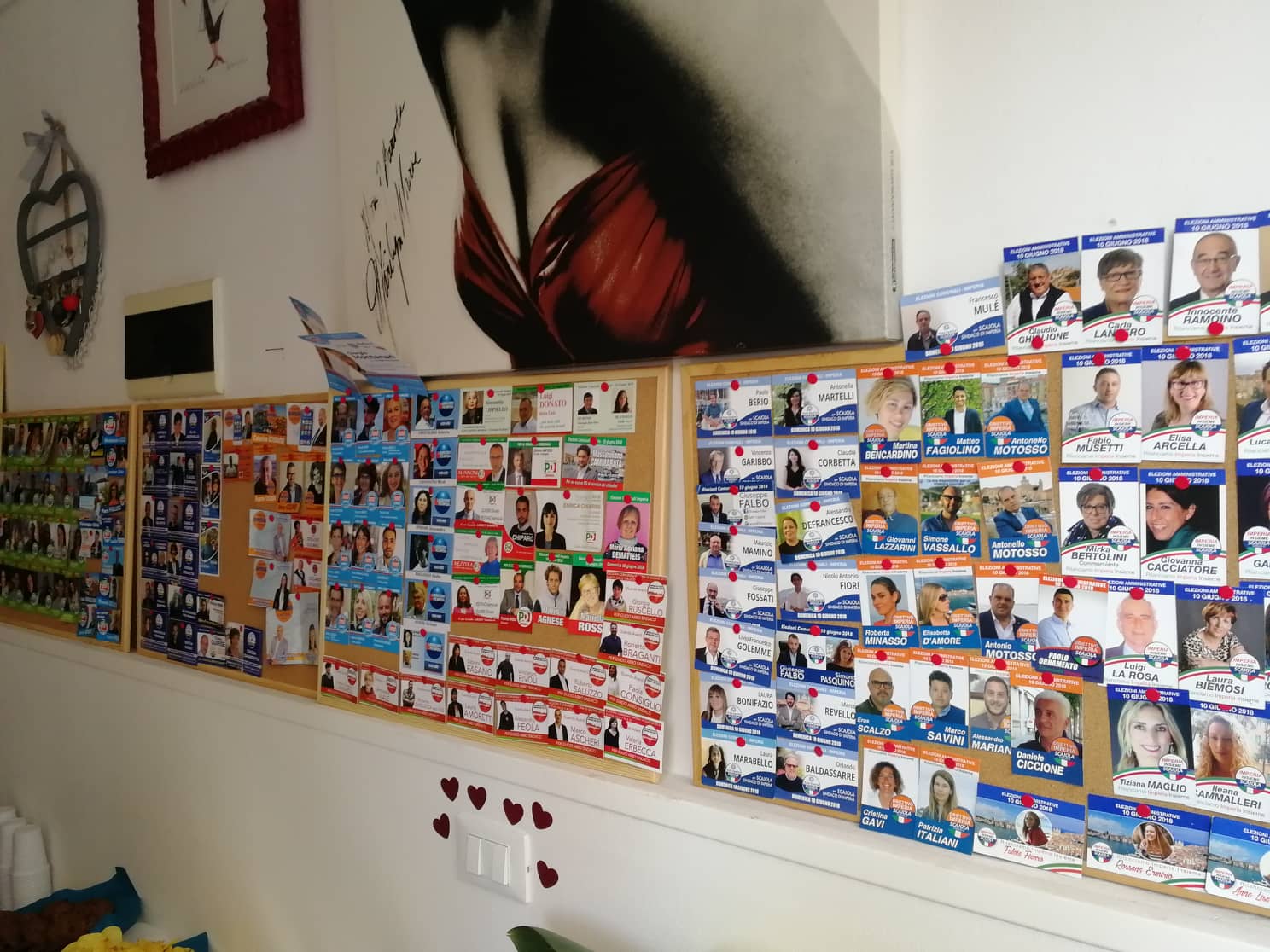 L’estetica Reds si è trasformata in un vero e proprio “negozio” di santini. Centinaia i santini elettorali, con la novità del “santino vivente”, ovvero la possibilità per i candidati di farsi scattare una foto dentro una cornice creata appositamente per l’evento.