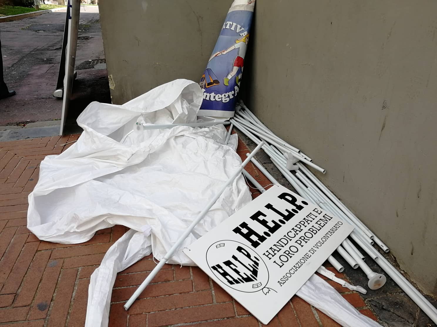 Questa mattina, quando le volontarie delle associazioni a tutela dei disabili sono arrivate in via XX Settembre per prendere posto nello stand a loro dedicato alla Fiera del Libro, hanno trovato una brutta sorpresa. Il gazebo, infatti, era completamente distrutto. All’interno materiale informativo delle associazioni Help, Integrabili e Anffas. A causare l’incidente il vento o, forse, ma non è ancora chiaro, un atto vandalico. Sul posto sono intervenuti anche i Carabinieri.