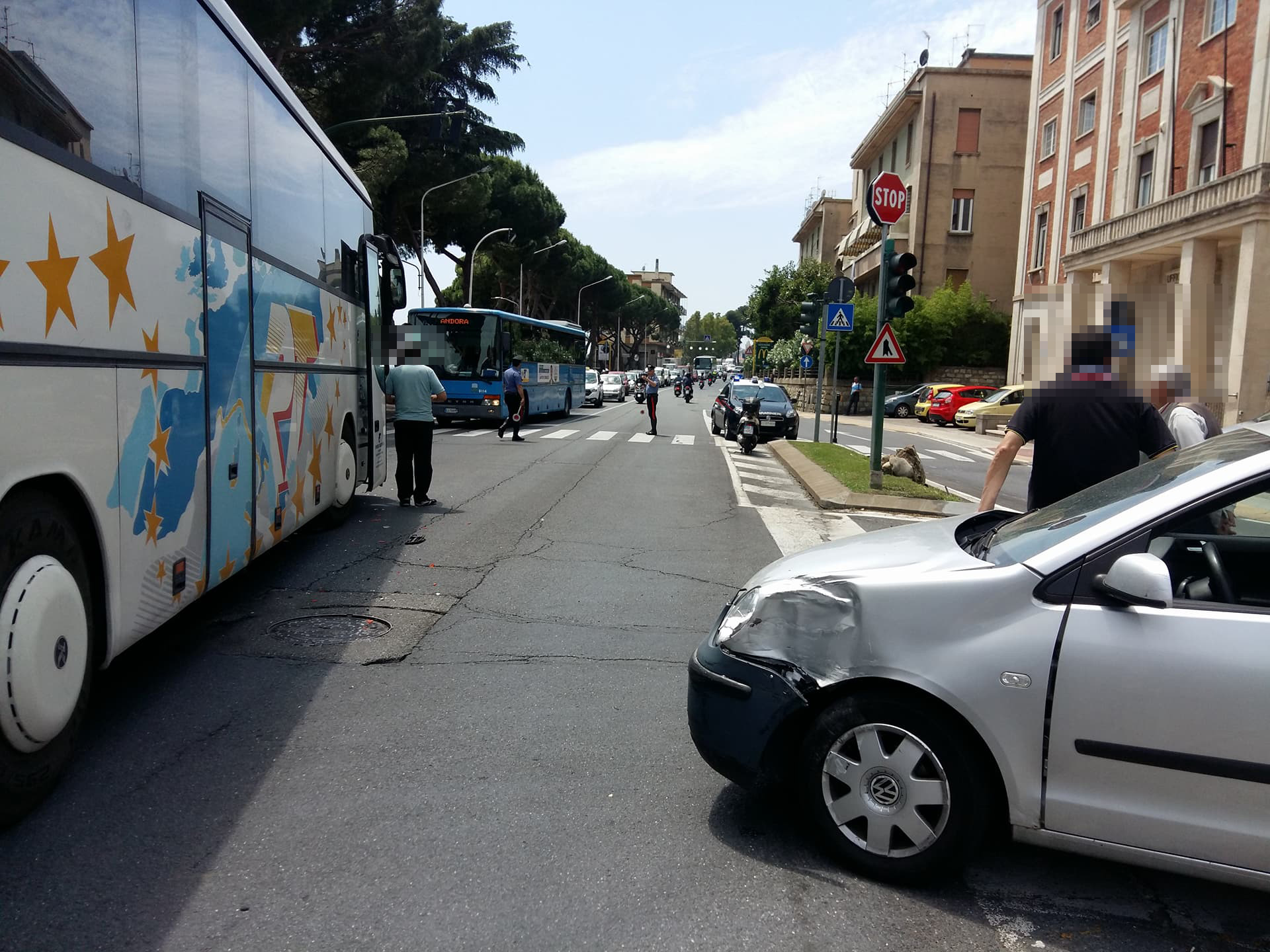 Un’auto, una Polo, condotta da un uomo di 45 anni, e un bus di studenti, per motivi ancora in fase di accertamento, si sono scontrati all’incrocio tra Viale Matteotti e via Trento. Per fortuna, l’impatto non è stato violentissimo e non si sono registrati feriti. Sul posto per regolare il traffico e ricostruire la dinamica dell’incidente, Carabinieri e Polizia Municipale.