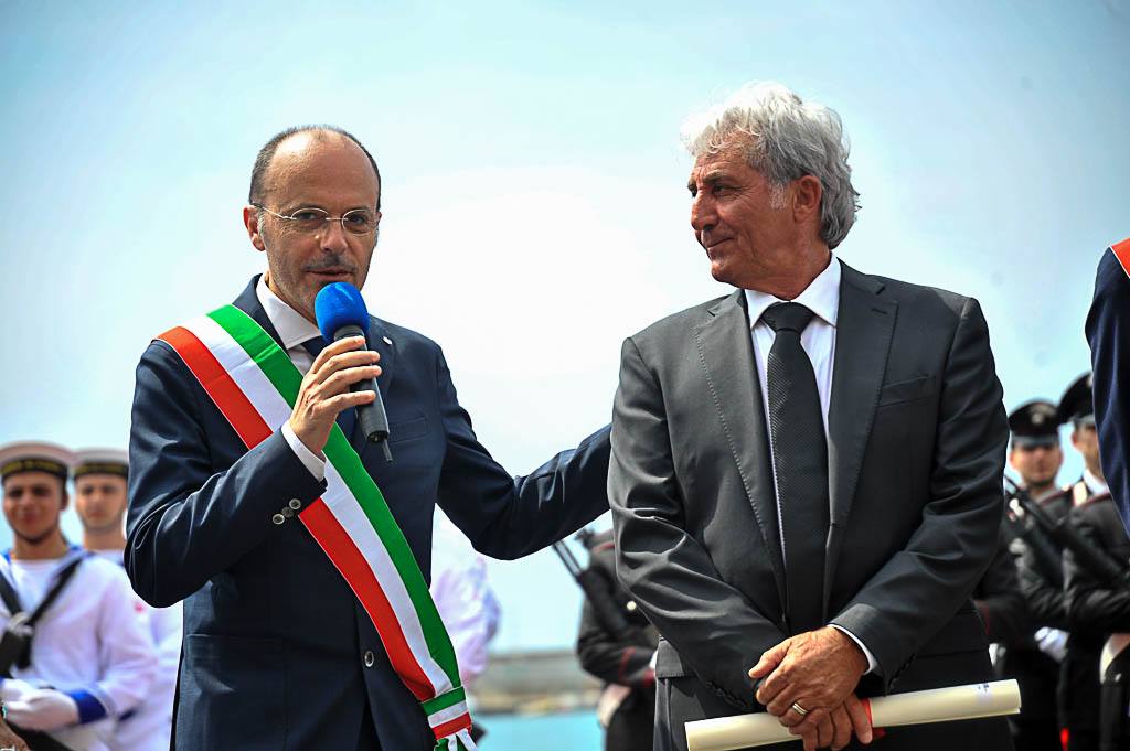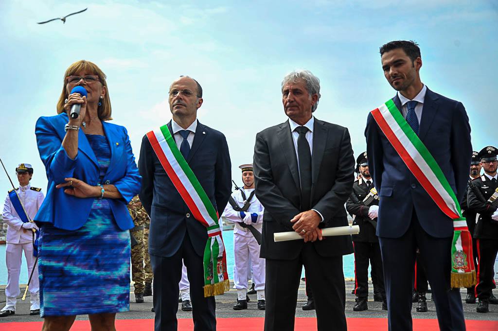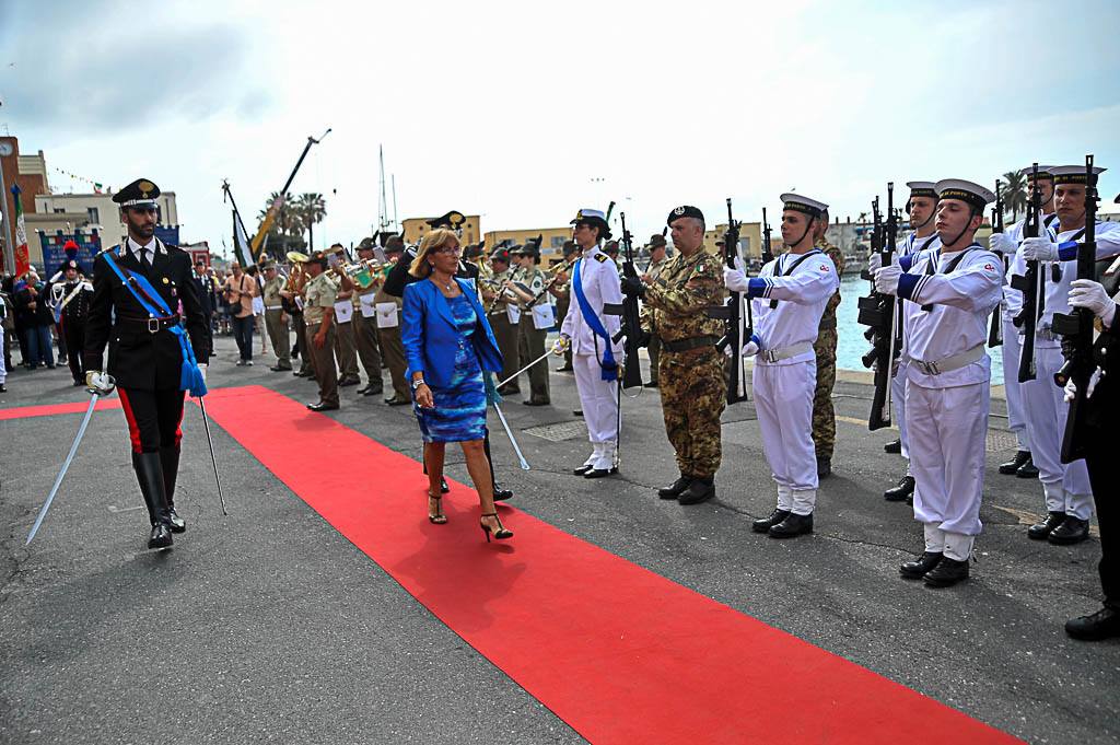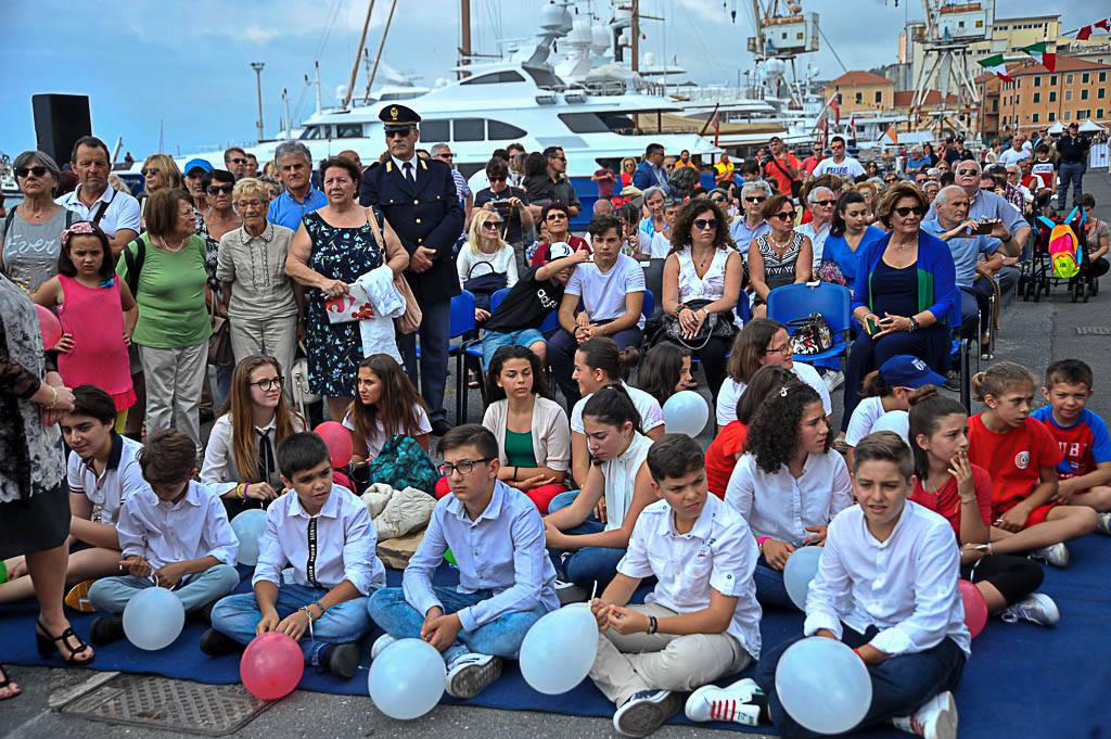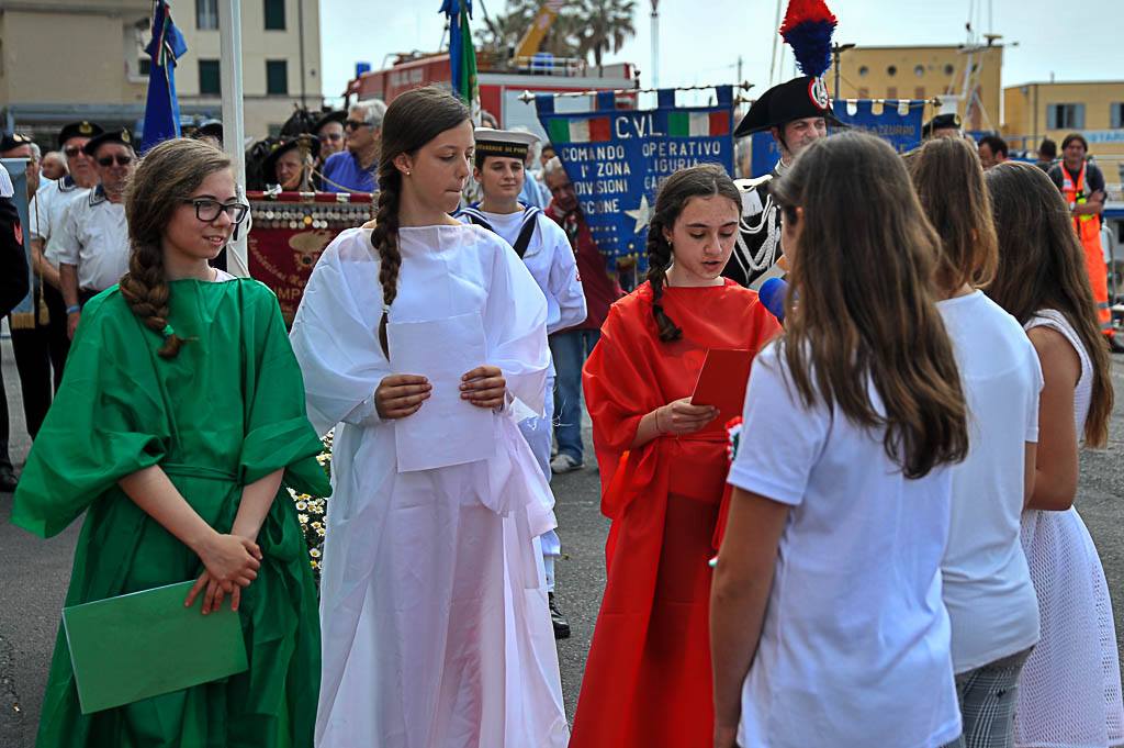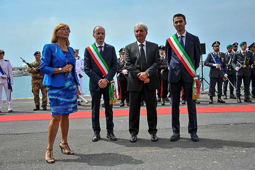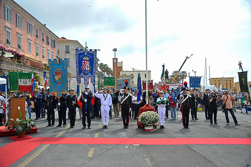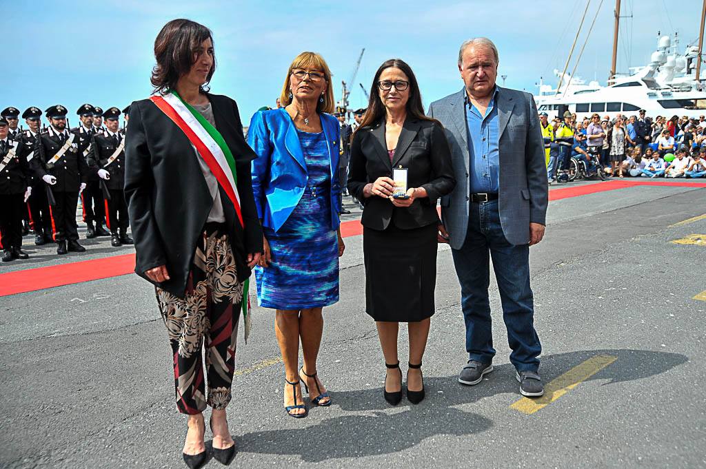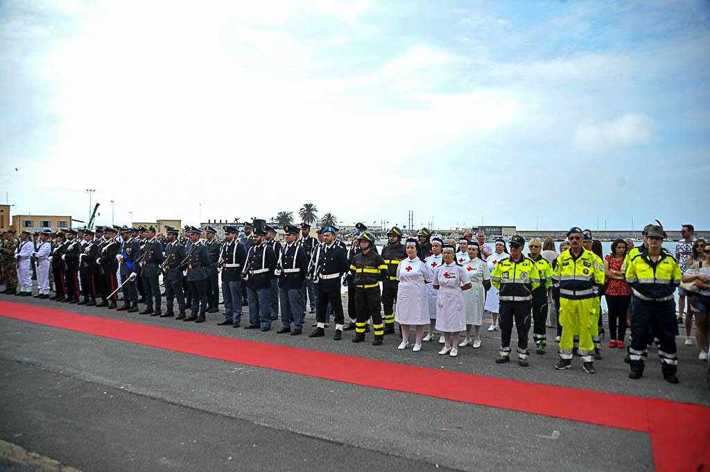Presenti il sindaco di Imperia Carlo Capacci, il presidente della Provincia Fabio Natta, il prefetto Silvana Tizzano e le massime autorità civili e militari della provincia. Presenti anche le forze dell’ordine e i soccorritori attivi sul territorio che hanno assistito ai festeggiamenti anche a bordo dei mezzi nautici direttamente dalle acque del porto di Oneglia. Novità di quest`anno, sulle note del “Va pensiero”, ad accompagnare l’unità navale della guardia di finanza che dal mare ha portato il tricolore, l’elicottero dei carabinieri di Imperia.