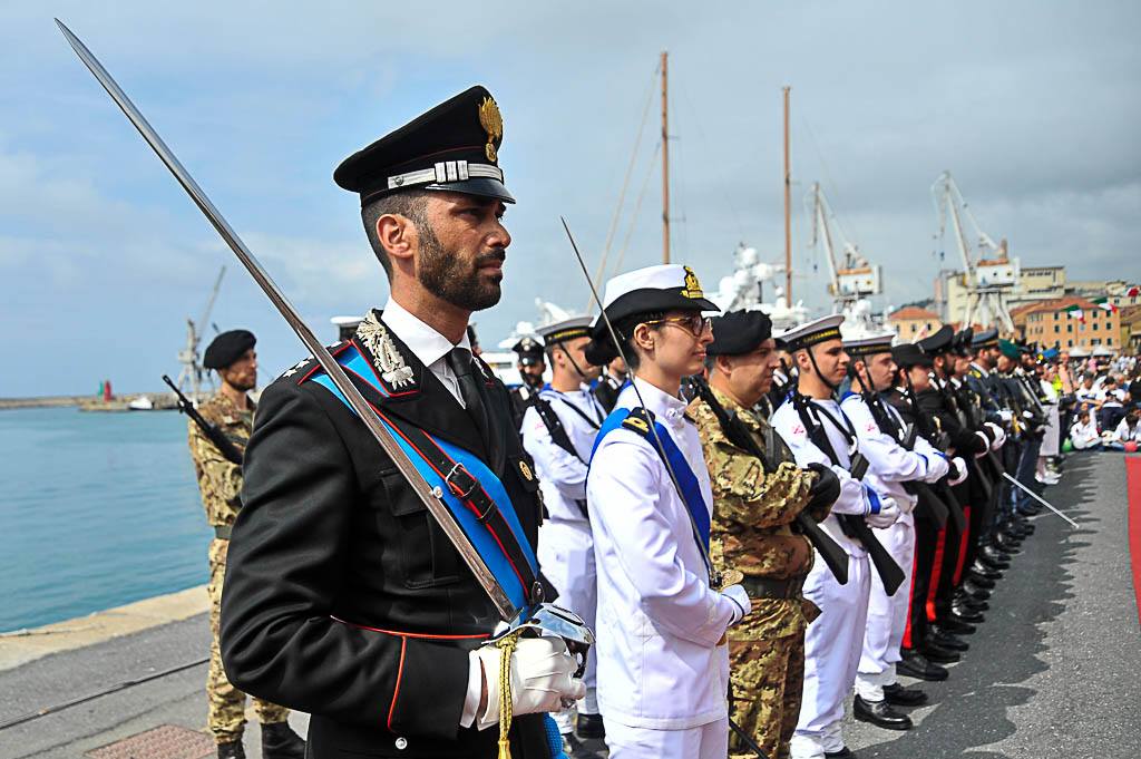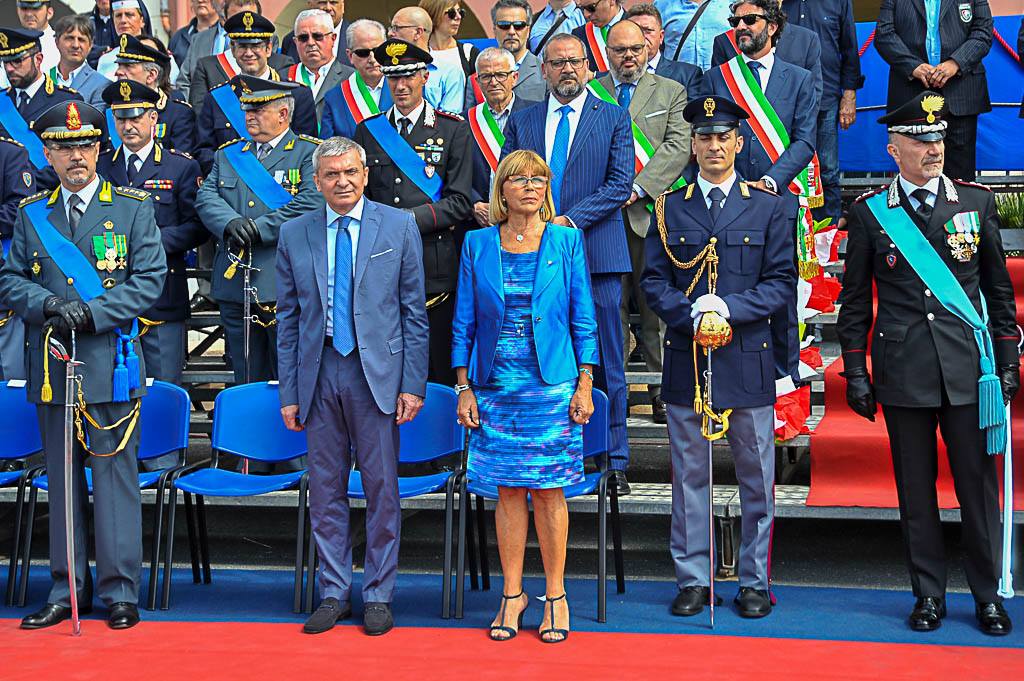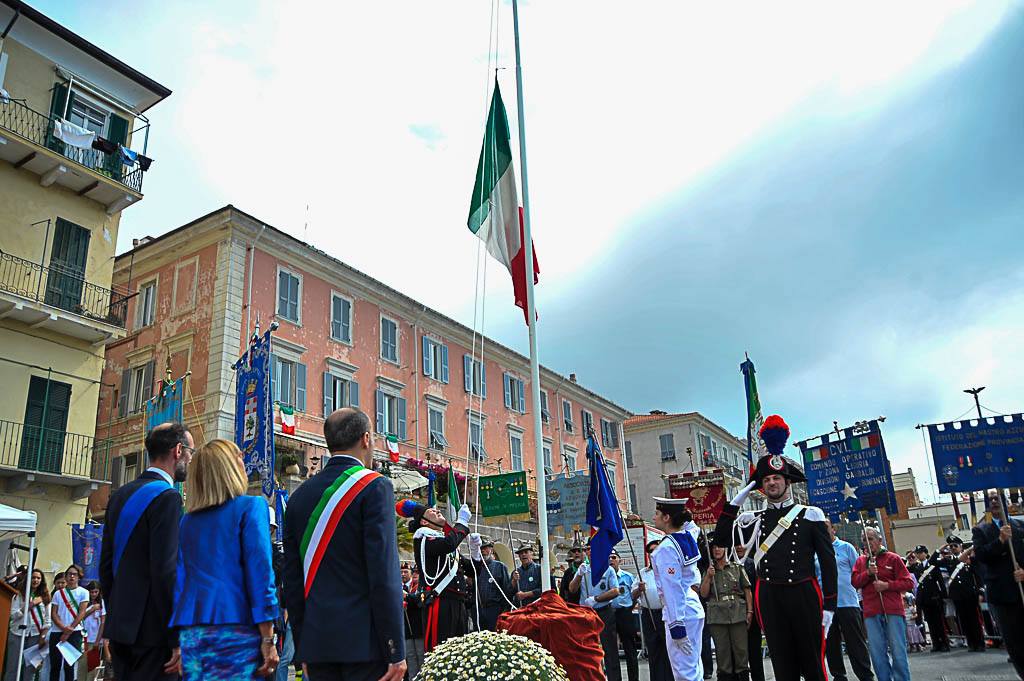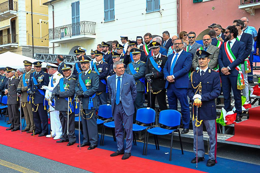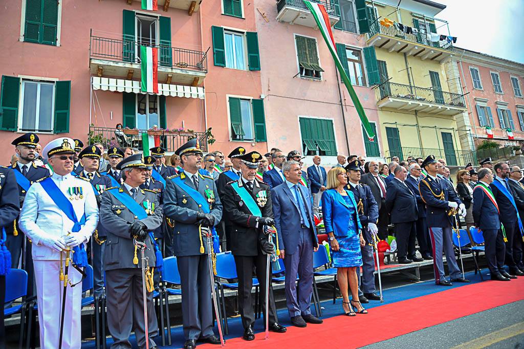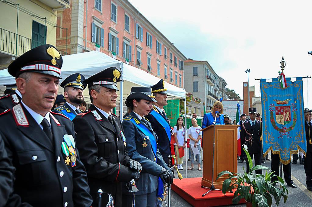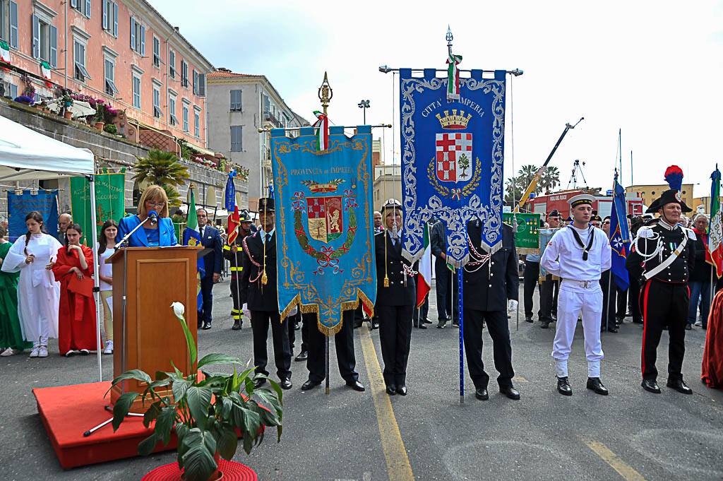 La cerimonia si è aperta con le celebrazioni istituzionali sulle note dell’Inno nazionale, eseguito dalla Fanfara Alpina Colle di Nava Sezione di Imperia, a cui è seguita la tradizionale Alzabandiera, la lettura del messaggio del Presidente della Repubblica e l’indirizzo di saluto del Prefetto Silvana Tizzano.