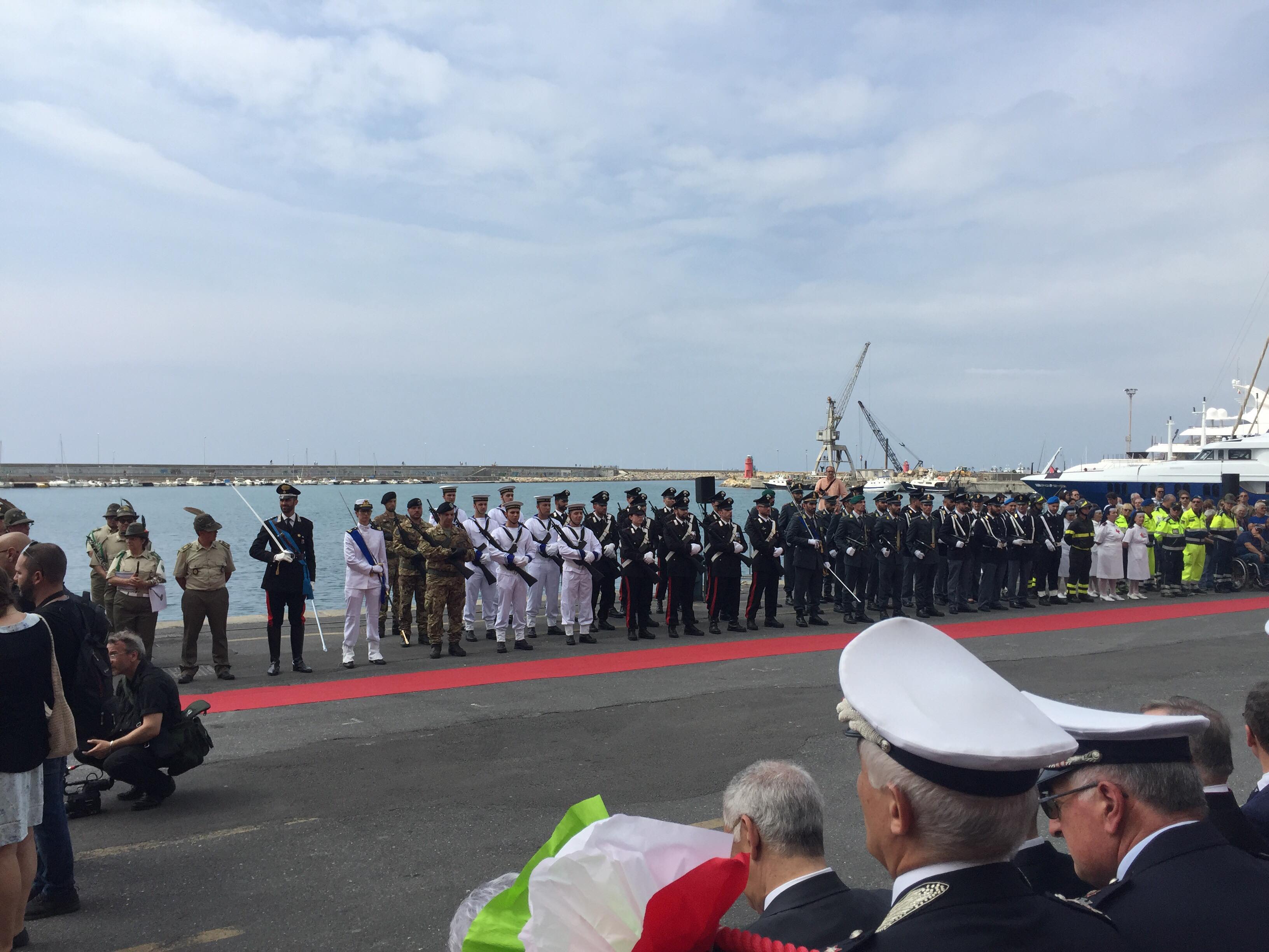 L’ARRIVO DEL TRICOLORE VIA MARE CON ELICOTTERO DEI CARABINIERI